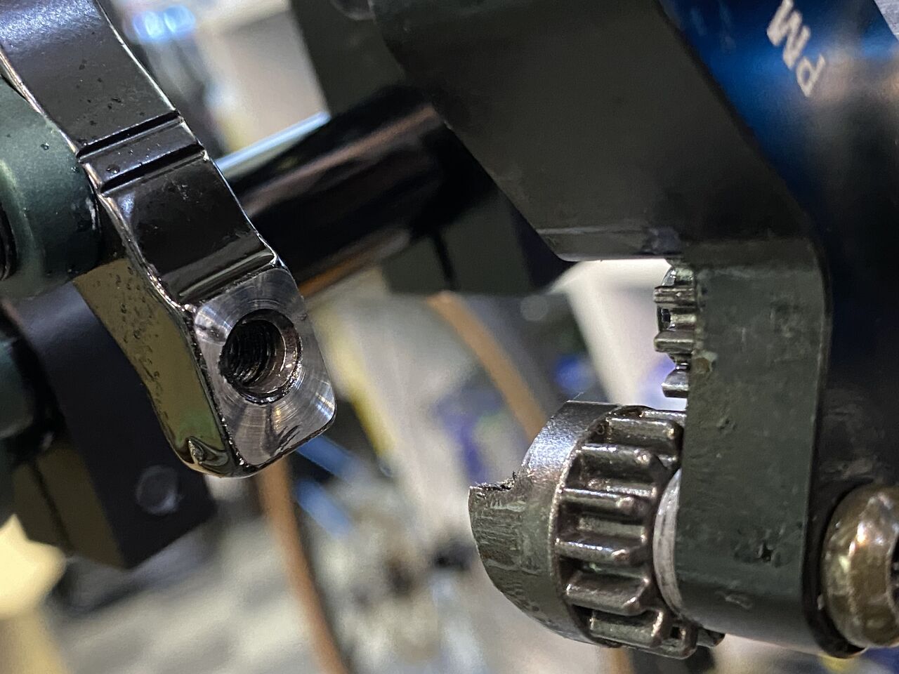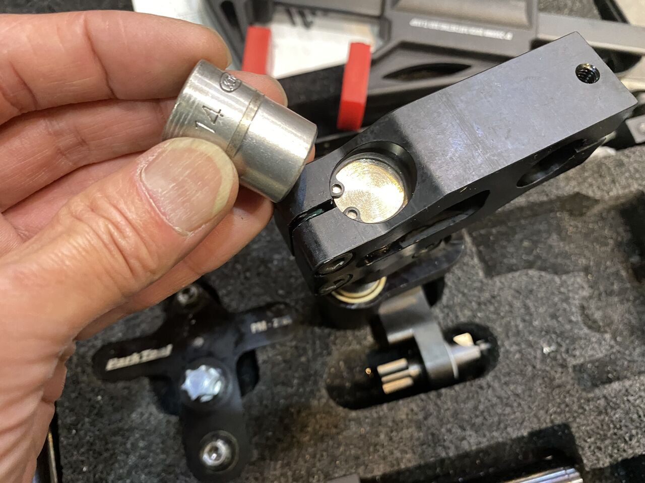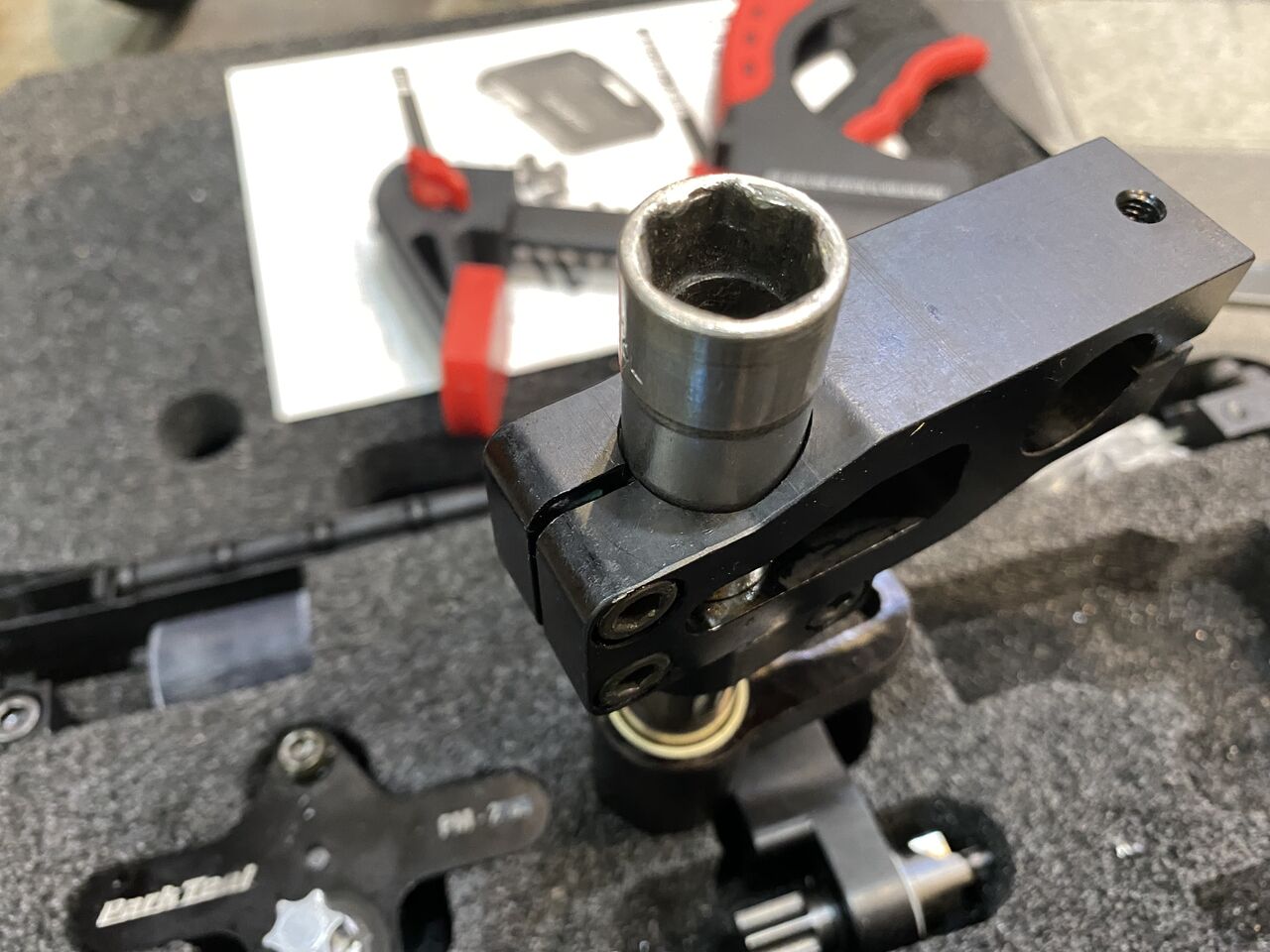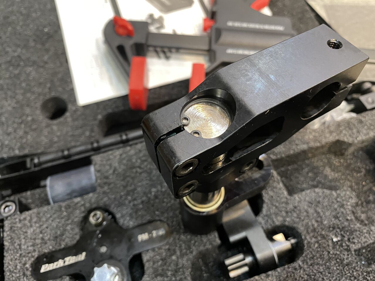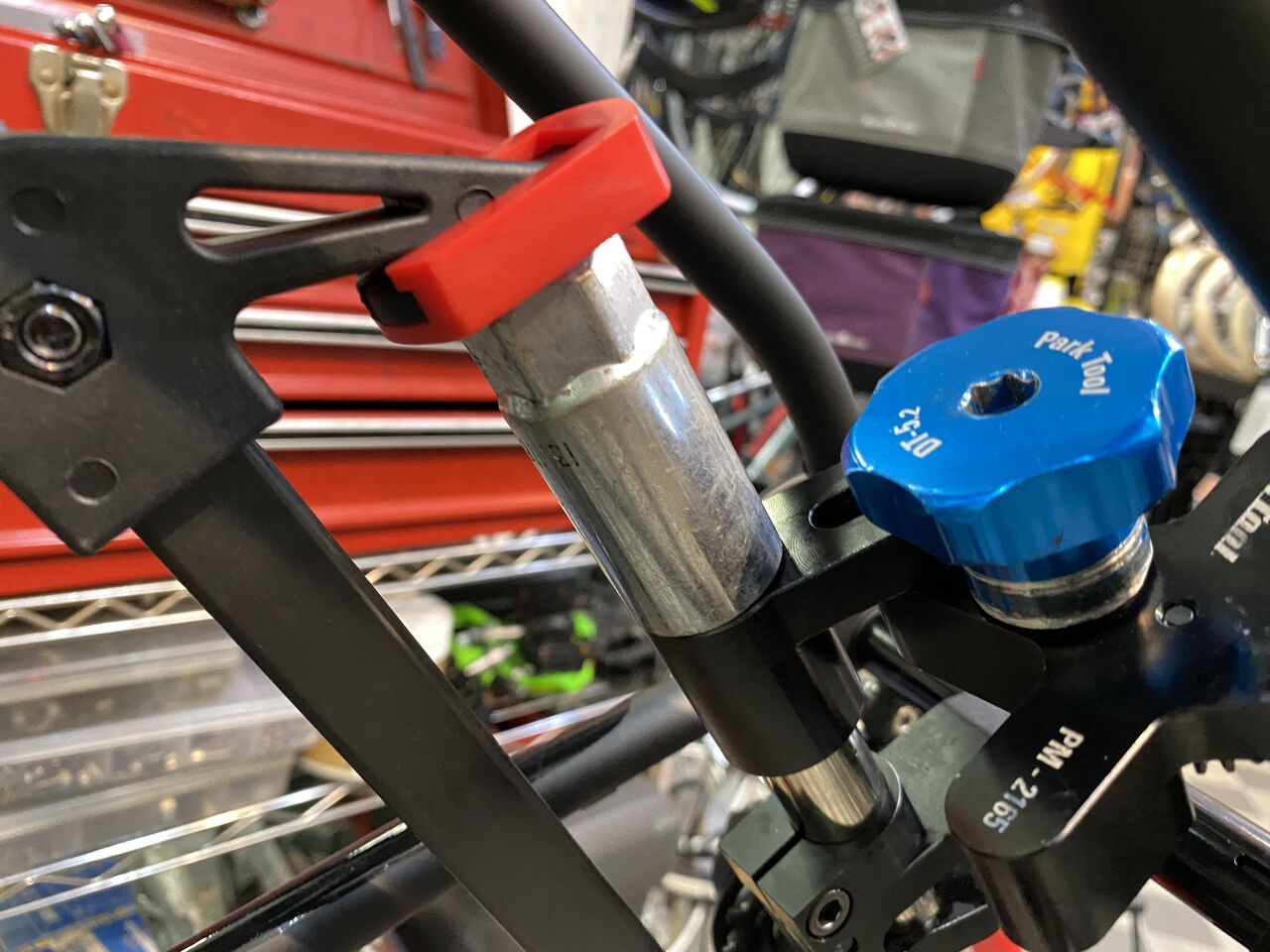 ブルーの方が PRESTA(仏式)バルブ用でバルブに噛みつく構造。