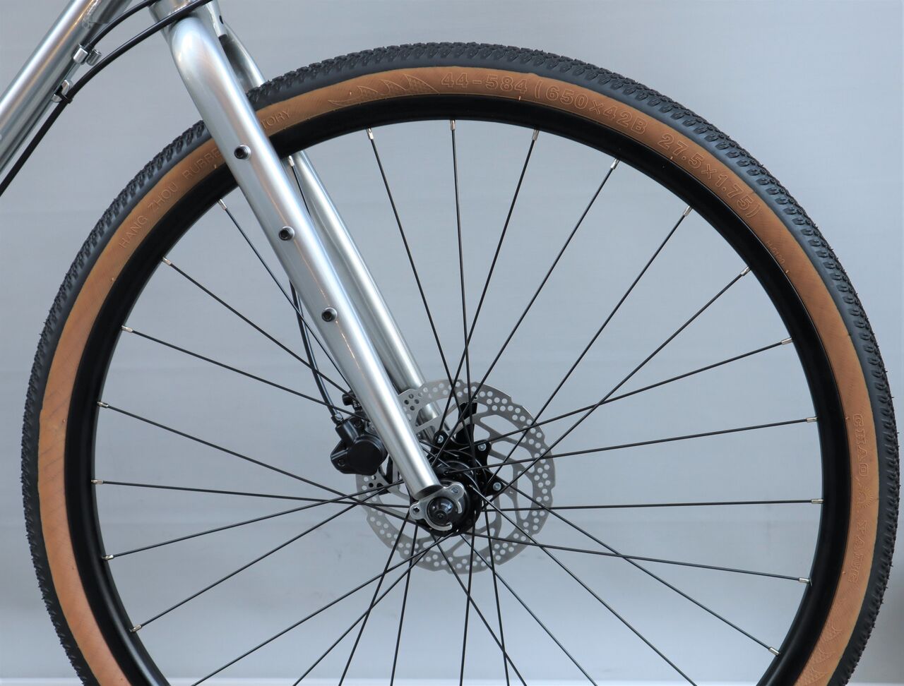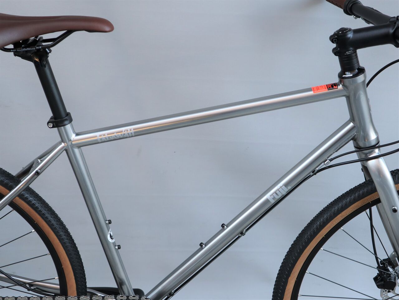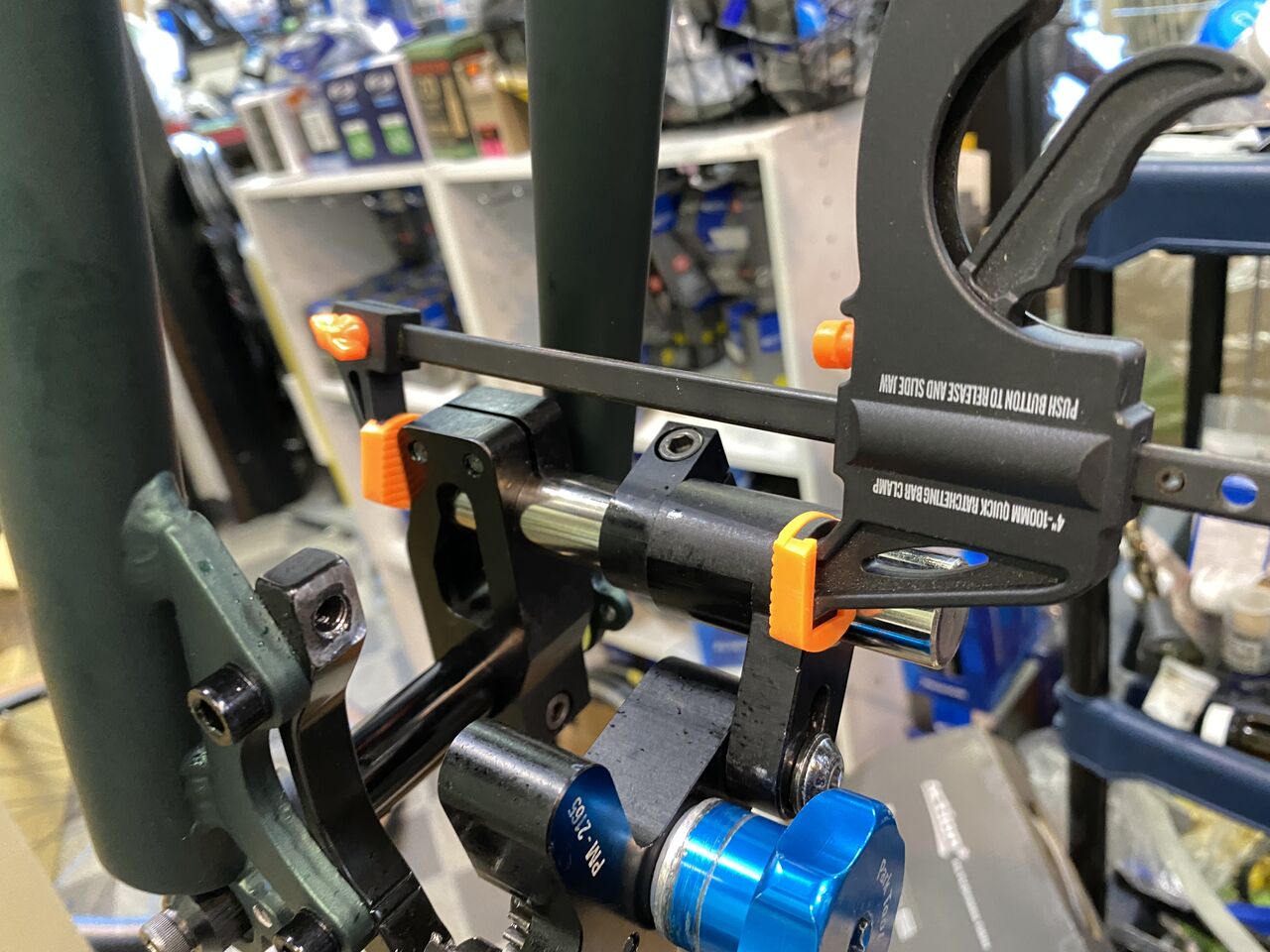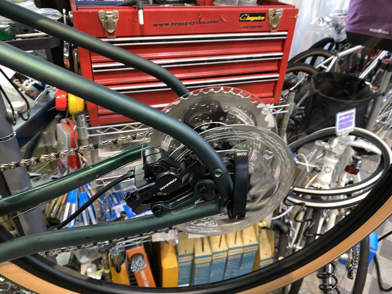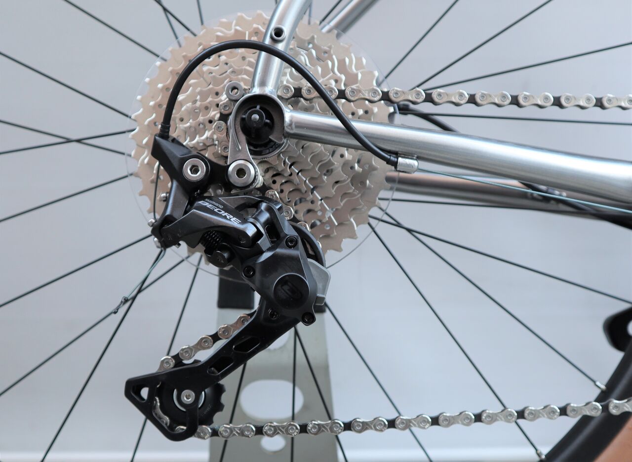 非常に狭い DAHON K3 のリヤに装着してみましょう。ブルーの仏式が飛び出した状態で挿入し、