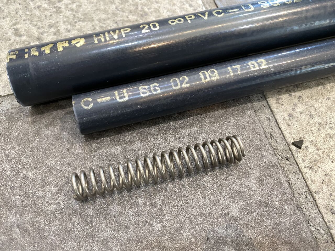 おっと!ニュルッとホースが出てきました。ムリなポンピングでバルブ破損を防いでくれます。