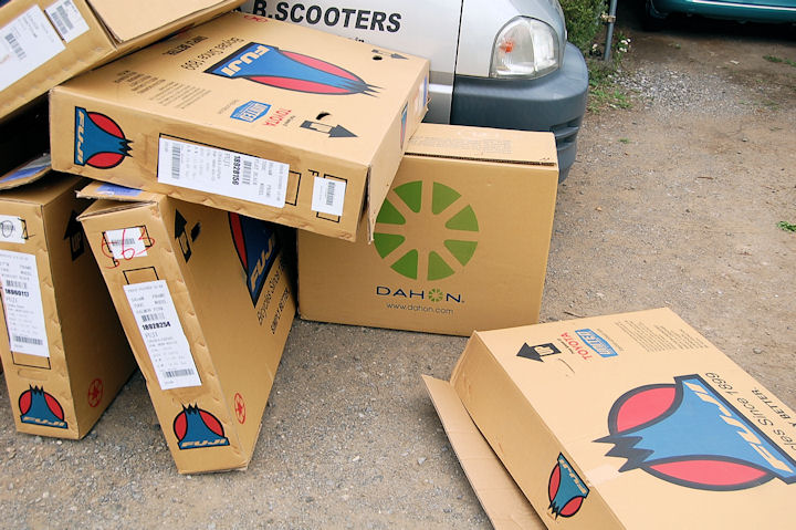 天候は曇り。風速3m、時折5〜6m。FUJIの箱がDAHONとは違い薄いので積み上げるのが結構難しい。