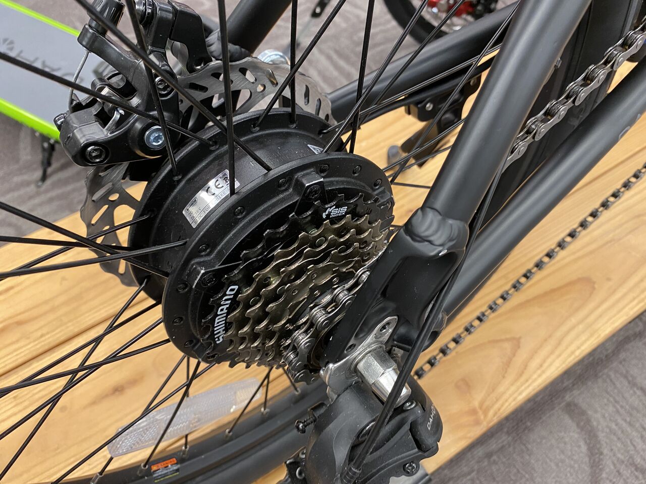 リヤハブ内に収まるモーター。