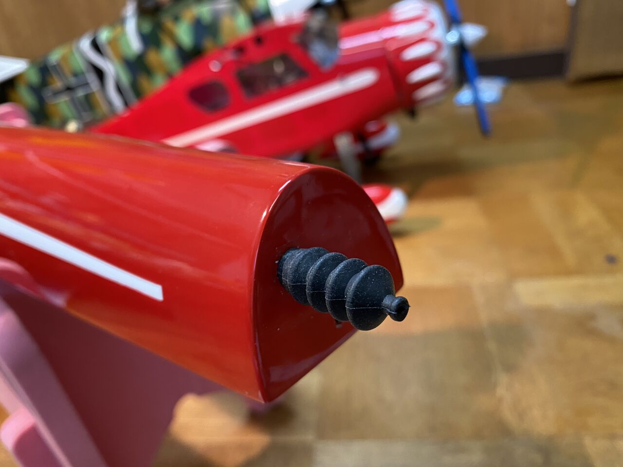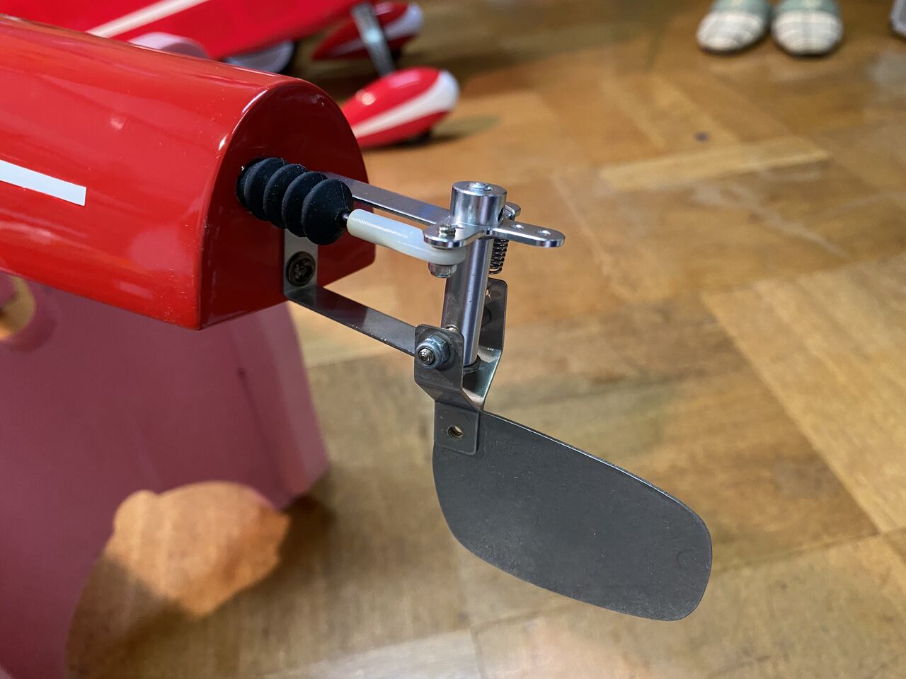 これが水中ラダー。キットには、左右フロート各1の2個付属してきますが、全金属製で重たいため左側のみとします。