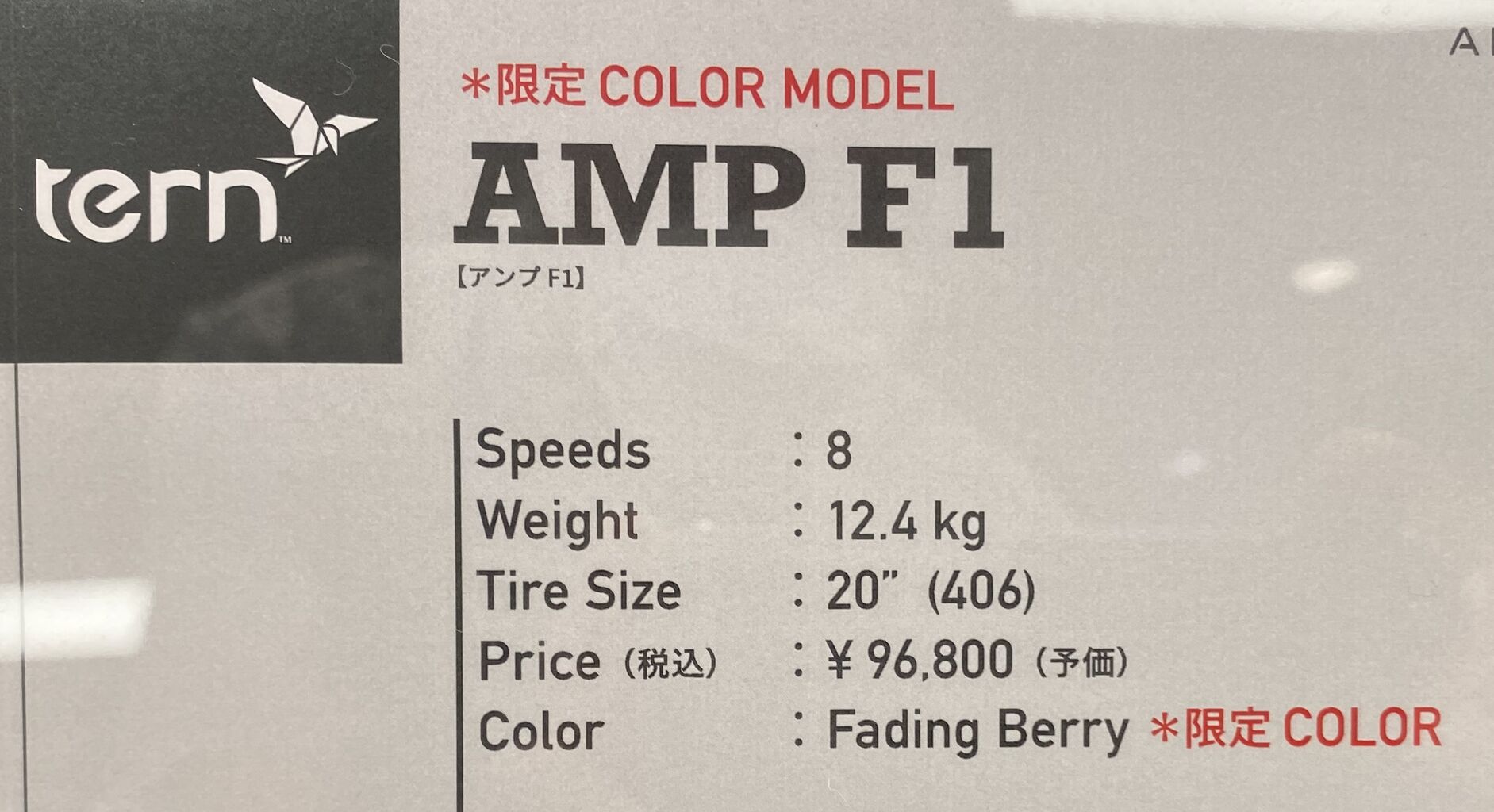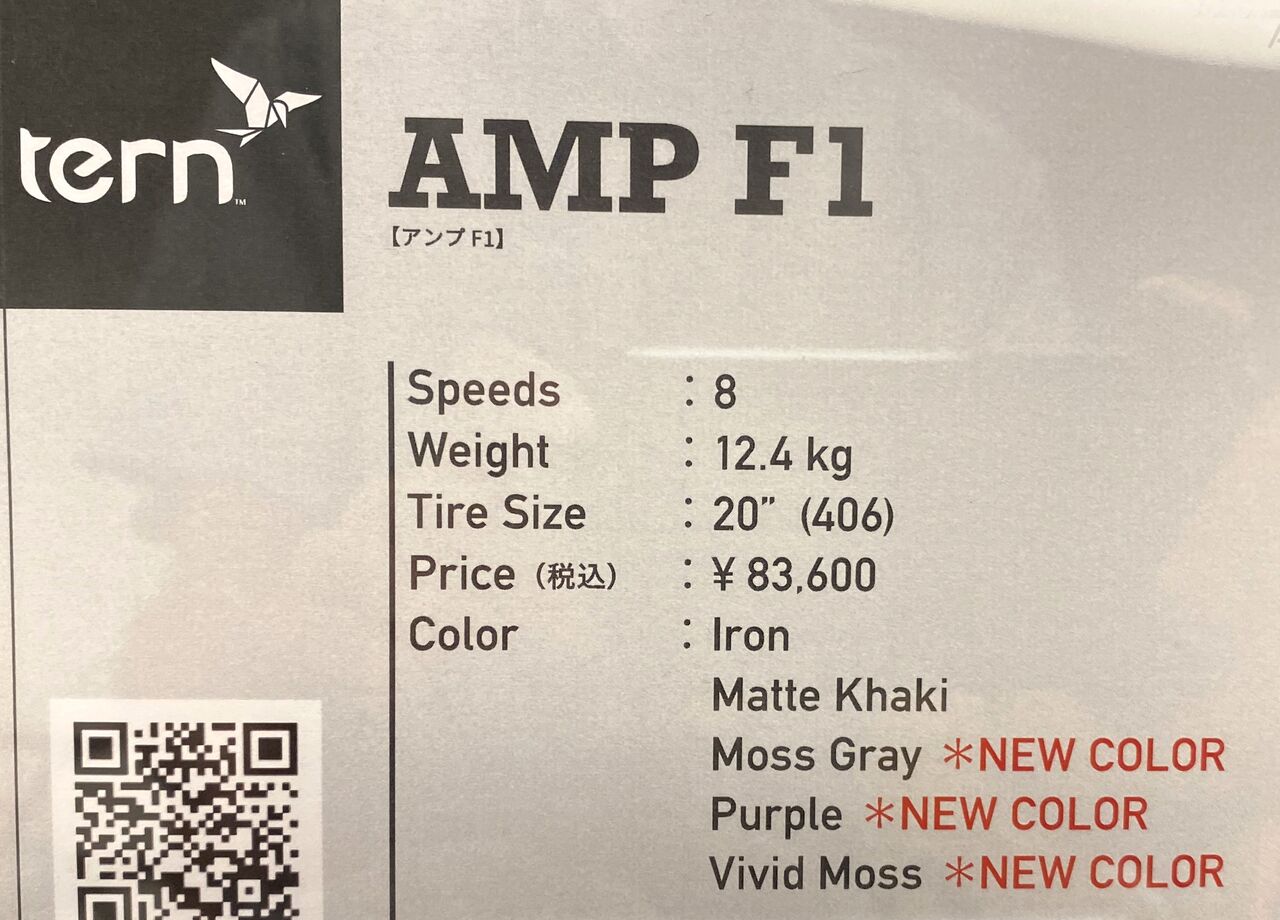 展示会レポート最後は、tern の AMP F1 新色登場と e-Bike をご紹介。