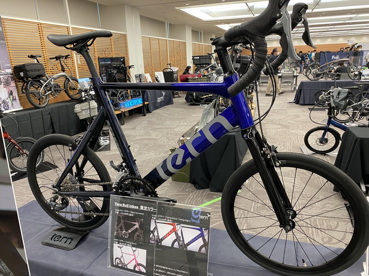 昨日、DAHON / tern / FUJI の3メーカー合同2023年モデル展示会に行ってきました。初めて開催となった有明の展示場は、スペースが広くとても見やすかったです。