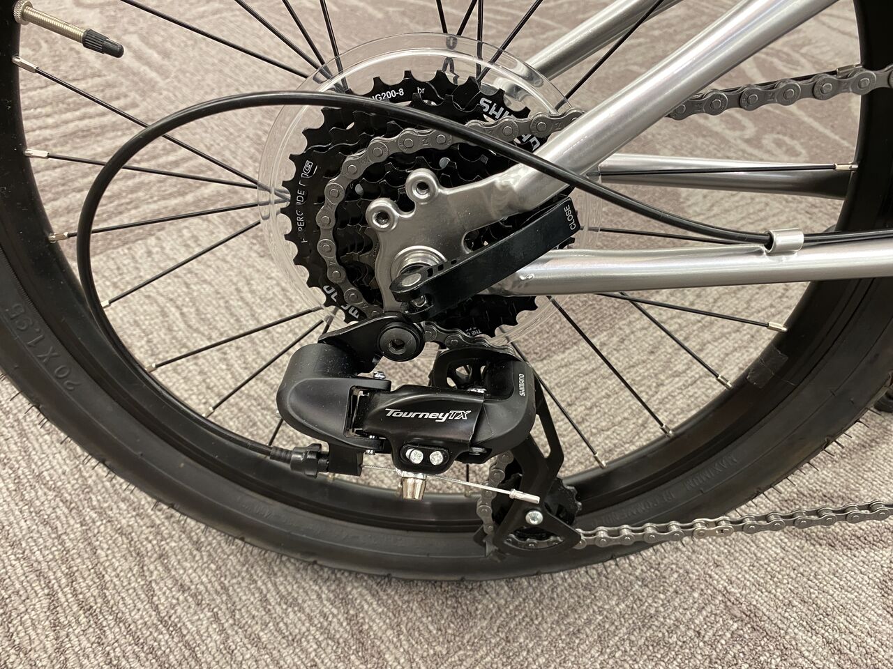 D7 からアップデートした 8 Speed。リヤディレーラーは、Shimano Tourney TX。