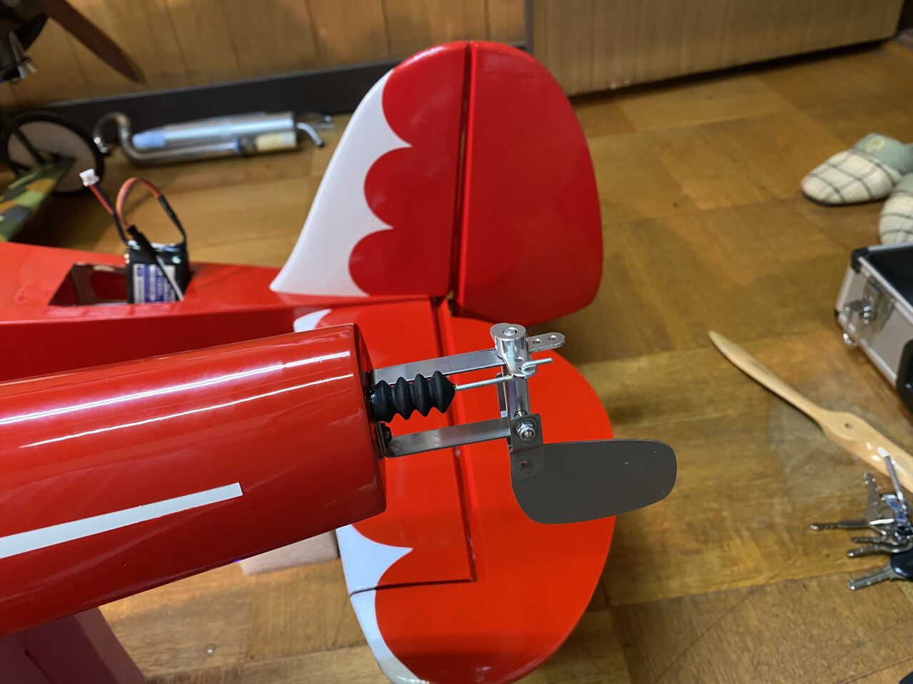 これで水中ラダーのリンケージは、完了。