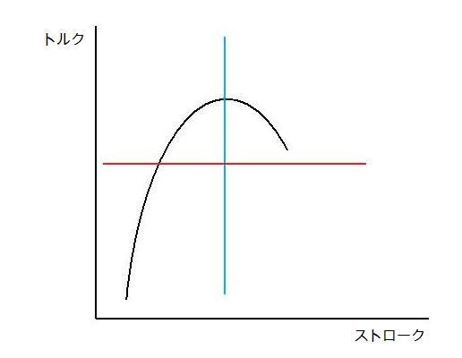 グラフの放物線が縦長なのはカムのプロフィールで(カムでは無く真円だったらストロークが出ない)放物線が途切れた所がレバーを最後まで閉じた位置です。青線の反対側にも同じトルクの位置が有りますが、その後緩む方向にレバーが開いてしまいます。