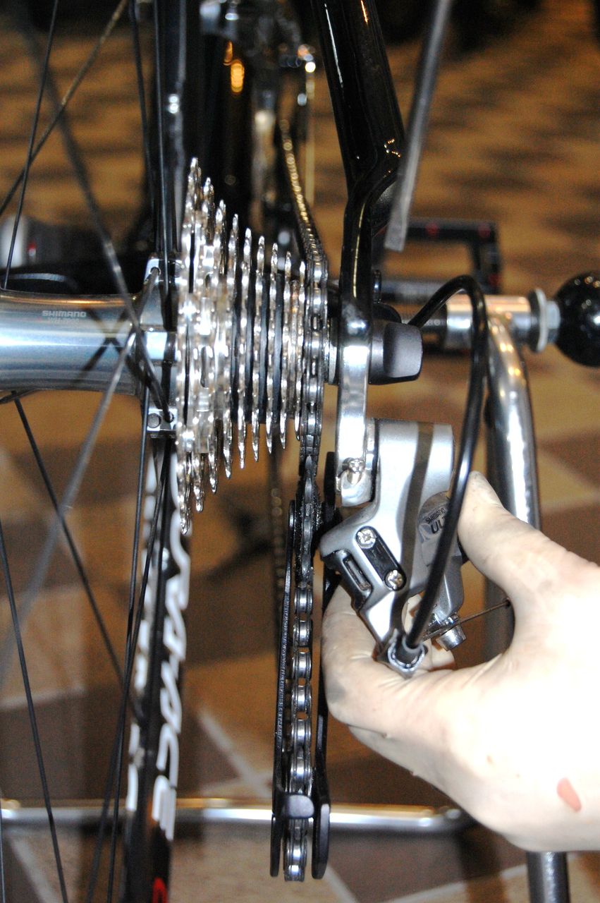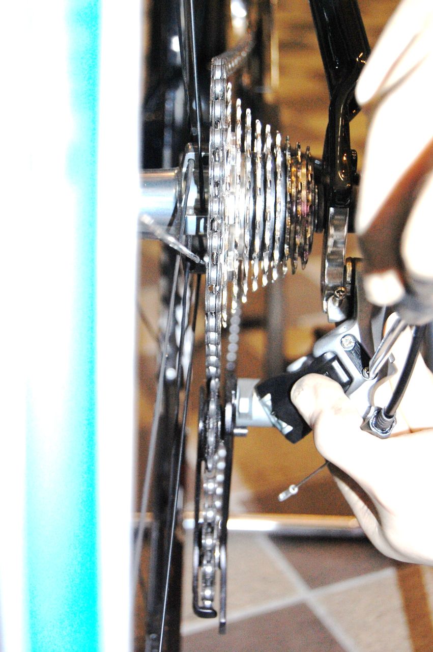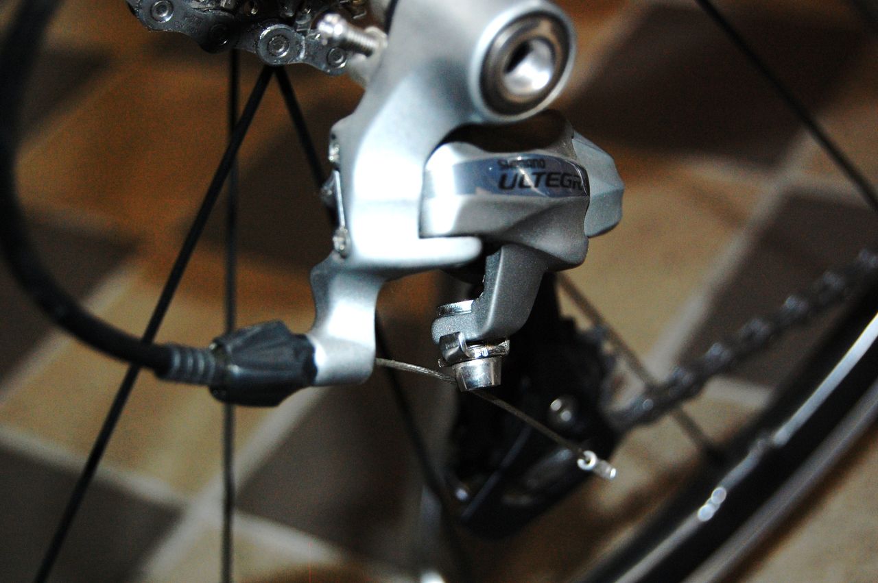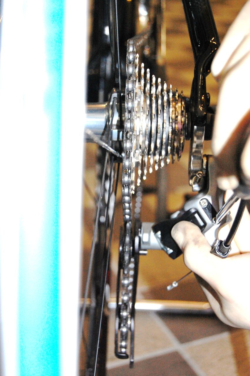 ディレーラーの調整範囲はクリアーしたので実際にシフトケーブルを繋いで変速してみます。
