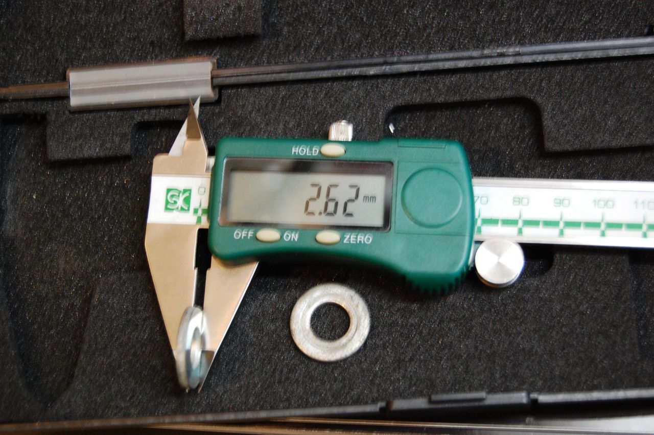 2.6mm厚のワッシャーを入れてもオーバーロックナットはまだ数mm出ていますのでエンドに掛かります。(乗るにはヤバイけど)
