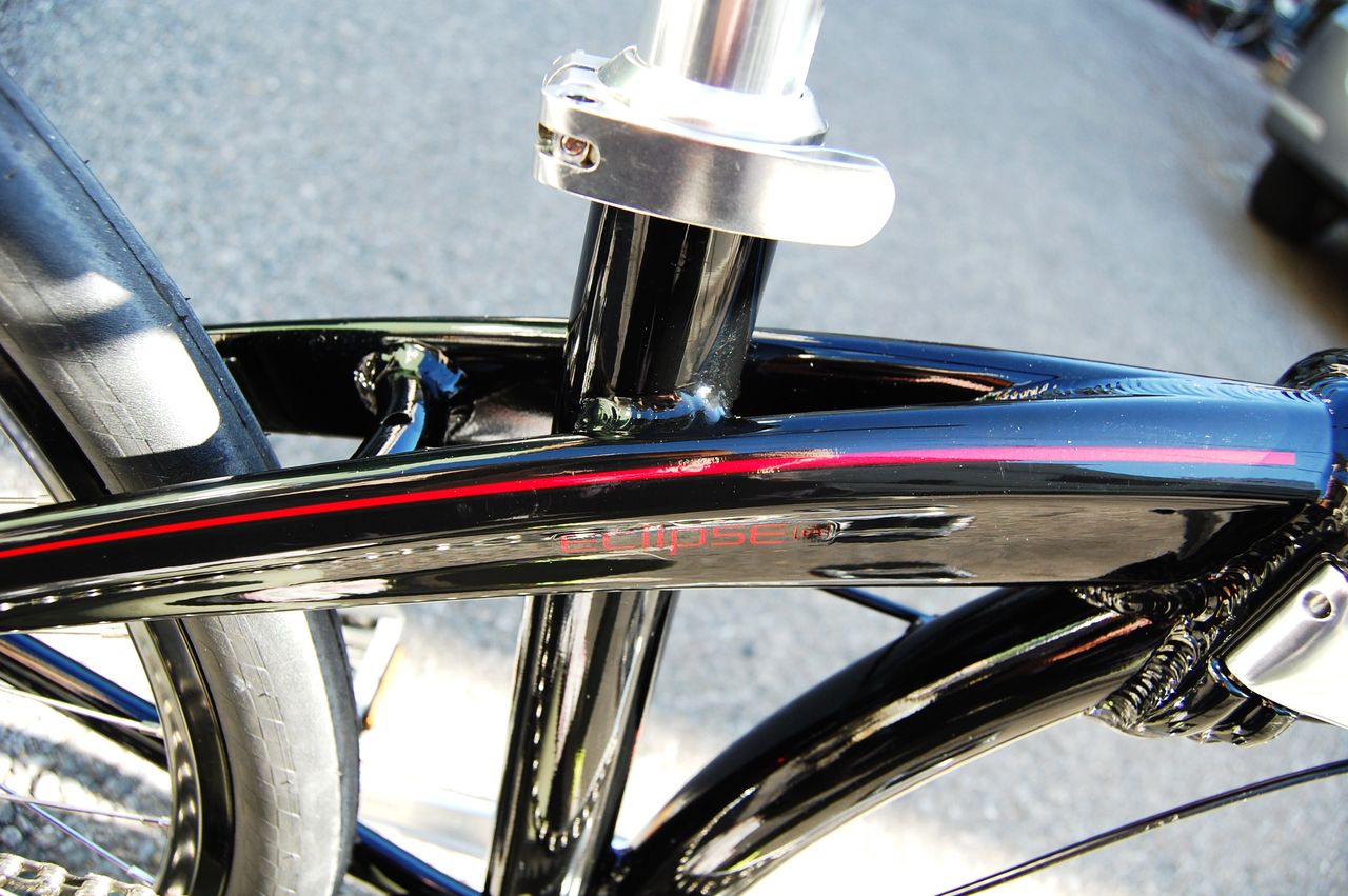 24インチと言うフォールディングバイクとしては、全く無い発想から生まれたイクリプスは、今までに無かった新しいフォルムを醸し出しつつ、路面を選ばない走破性を持っています
