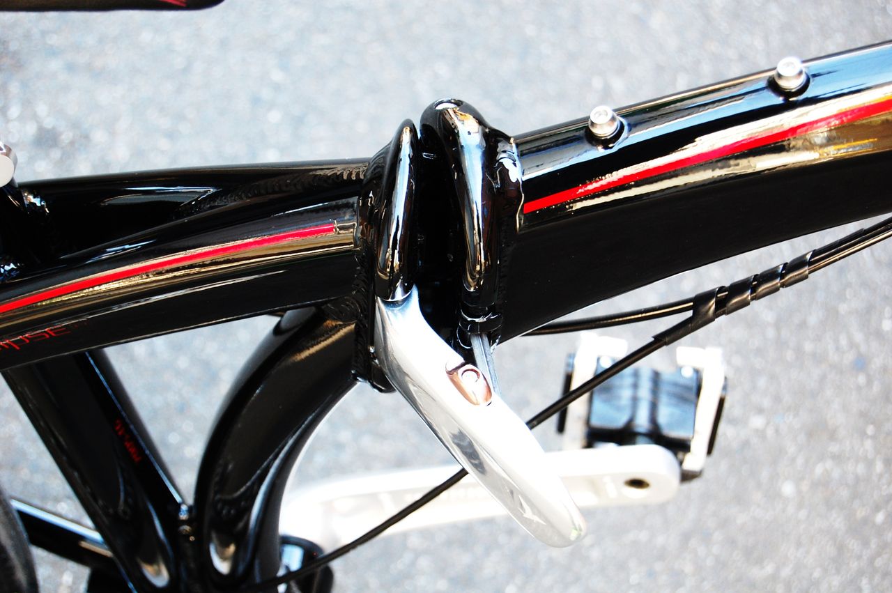 ワンアクションで好みのライディングポジションが取れる優れもので、折畳時も工具を必要としない。