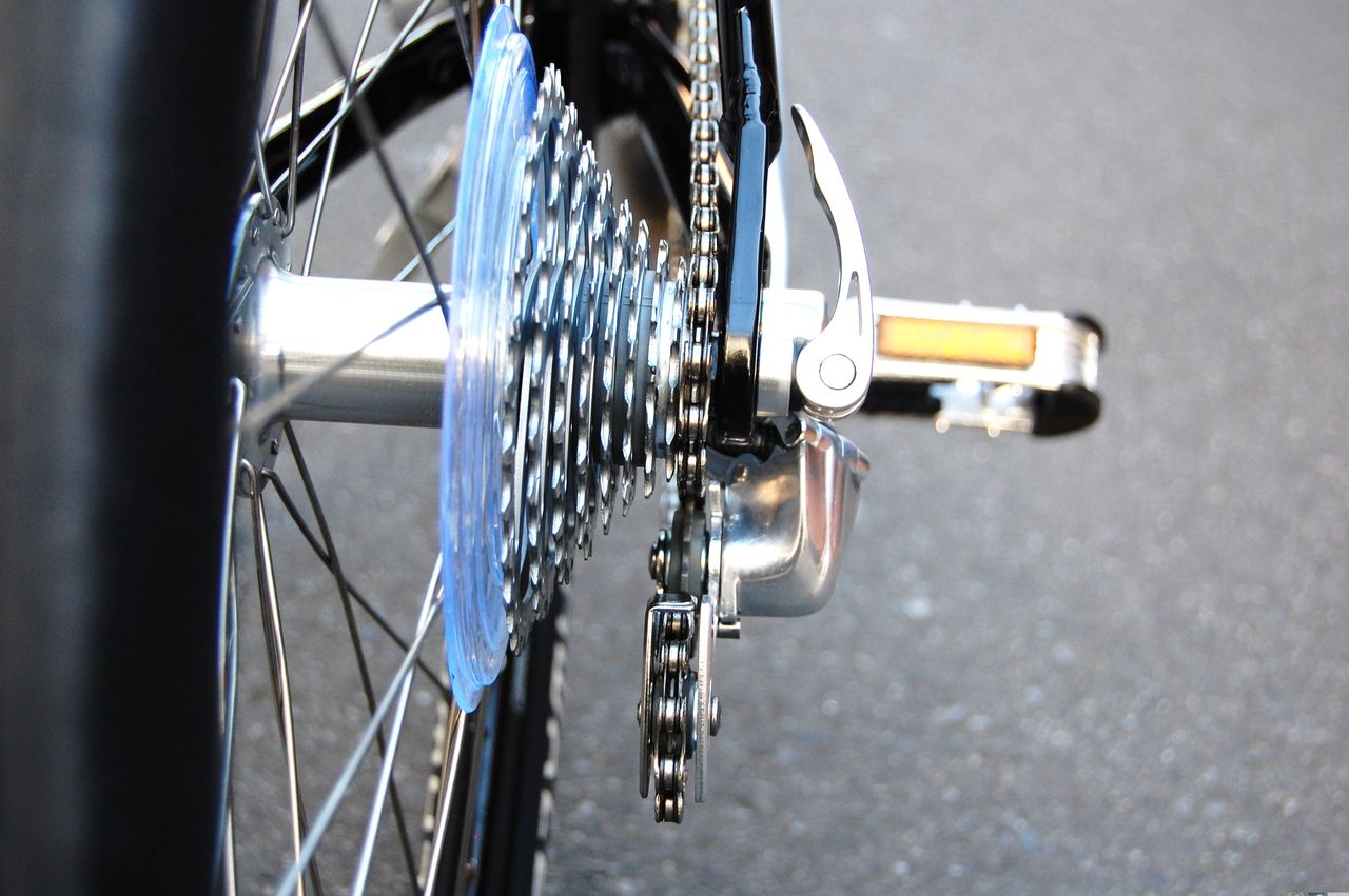 ローノーマルのディレーラーは、グリップシフターの操作力を軽減する方向に働く。