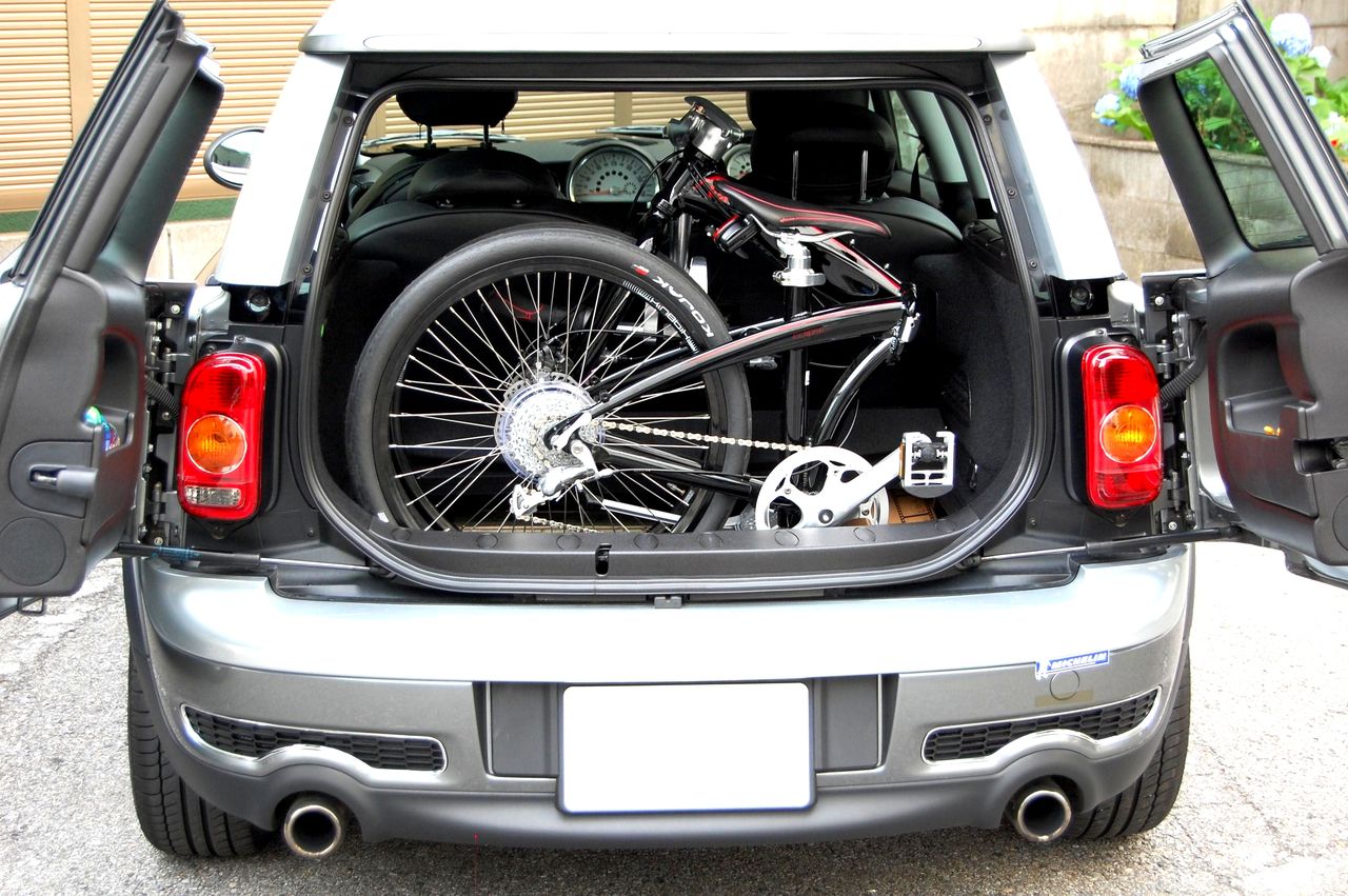 こいつは難題だ!前回クーパーSに16インチのDAHON Curve D3が超ギリだったのに、クラブマンと言えども24インチの折り畳みは絶対無理だろう。しかも後部座席を倒さずにだ?