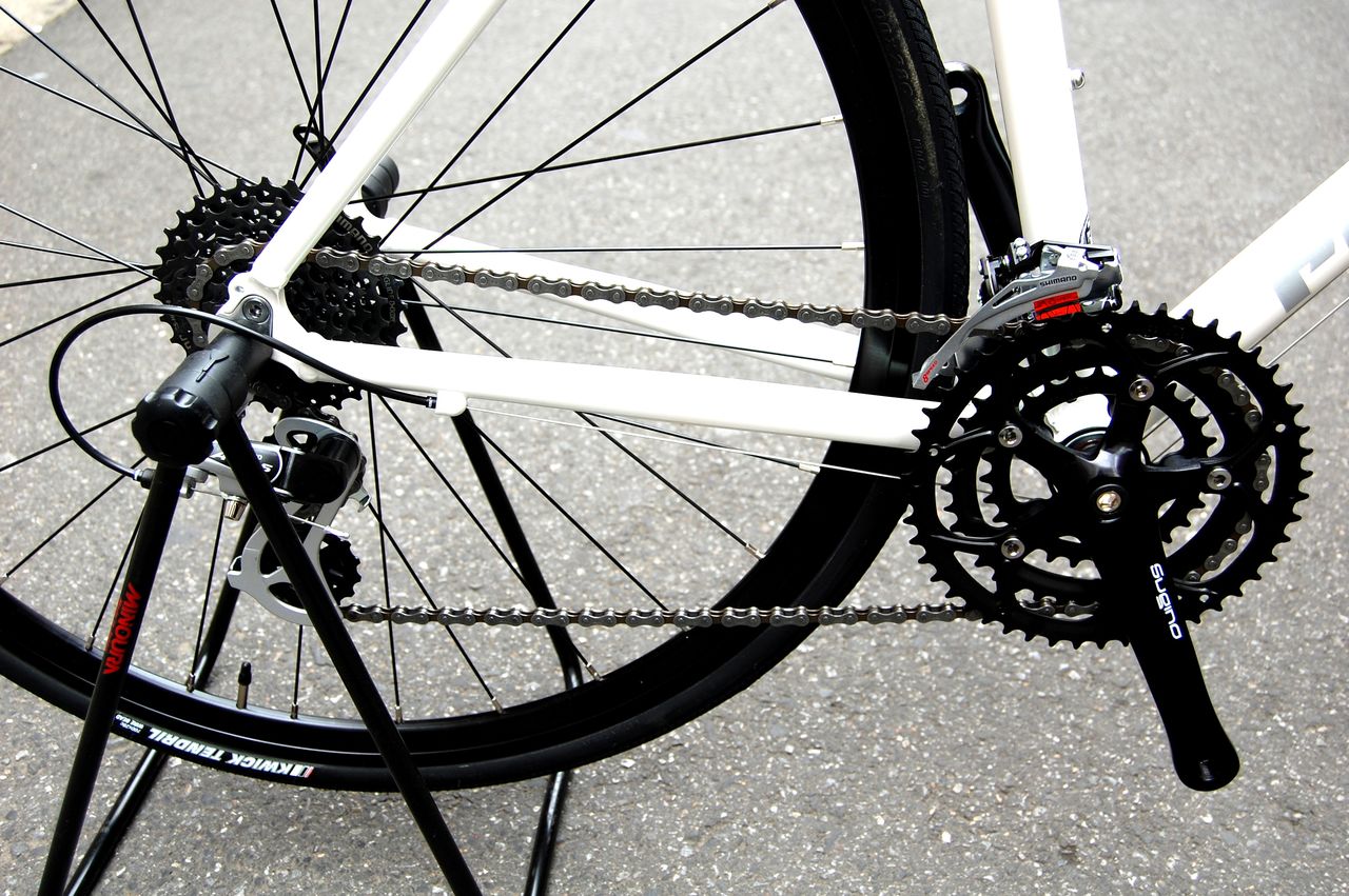 MTB ワイドレンジのドライブトレーンを持ちながらも、キャリパーブレーキ装備や、低く構えたハンドルステムのフォルムはフラットバーロードと言えよう