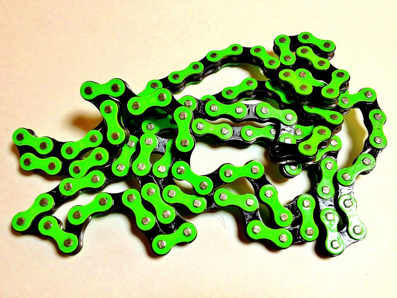 蛍光グリーンのアウターリンクとブラックインナーリンク。
