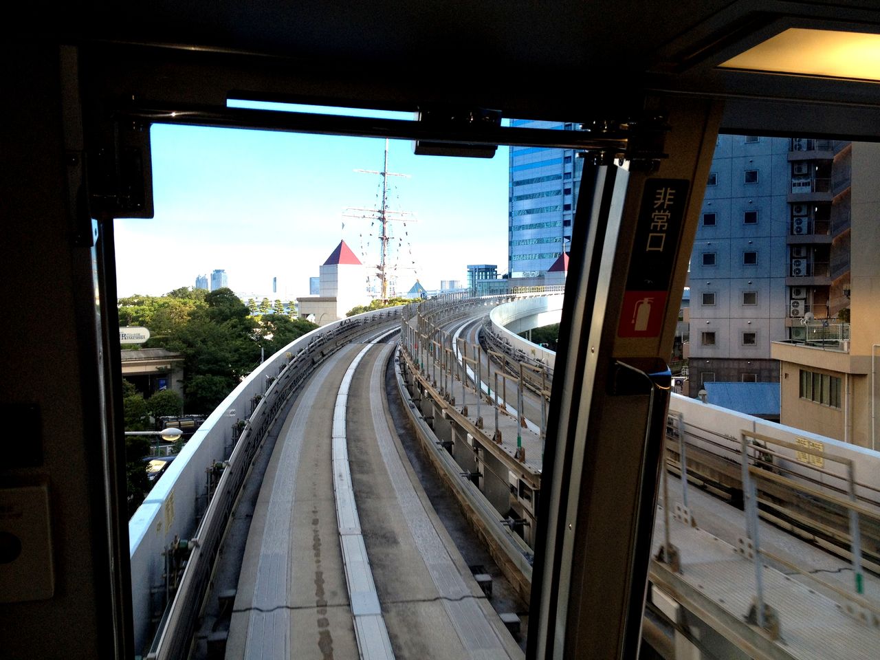 向かえの「ゆりかもめ」はレールも無いのにどうやってハンドル切ってんだろ。