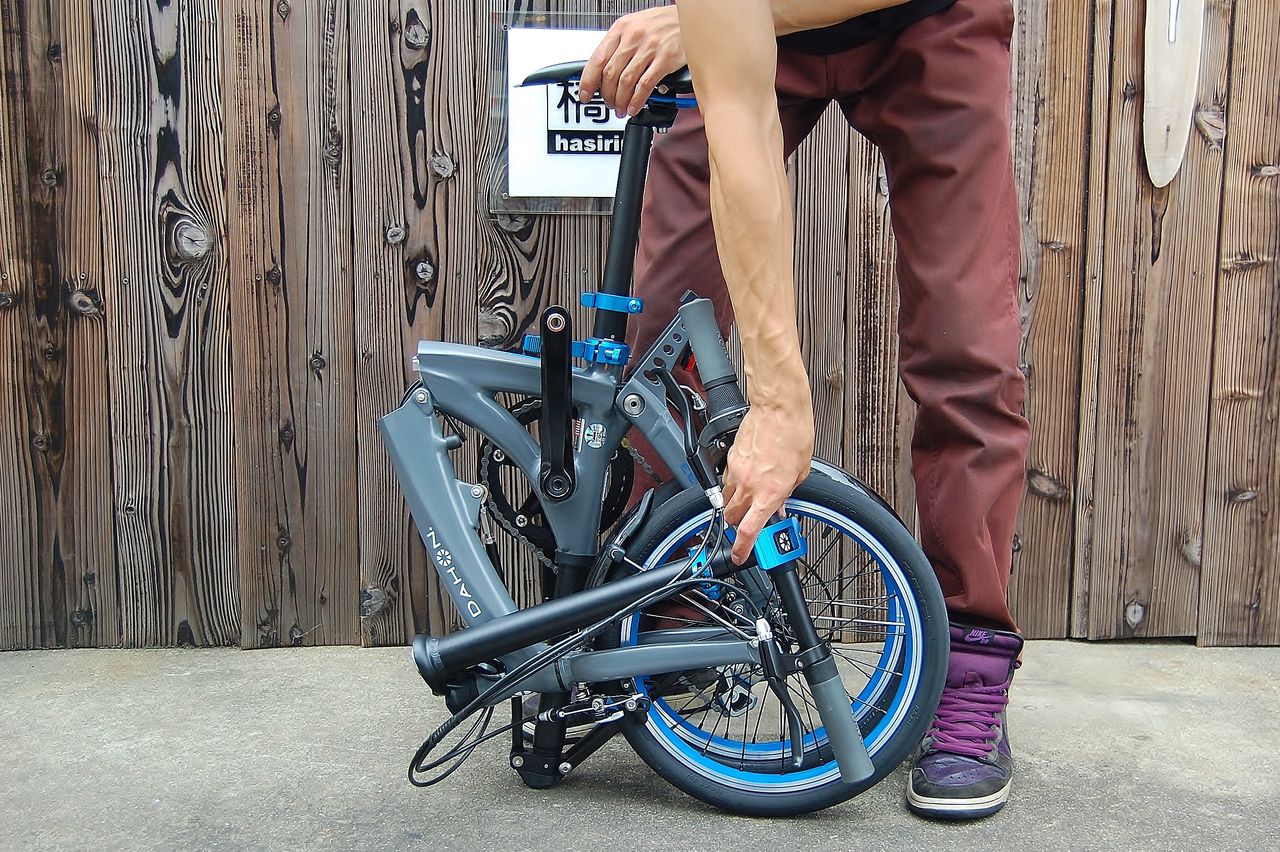 シートポストを下げれば折り畳み終了。タイムを測ると15秒ぴったり!