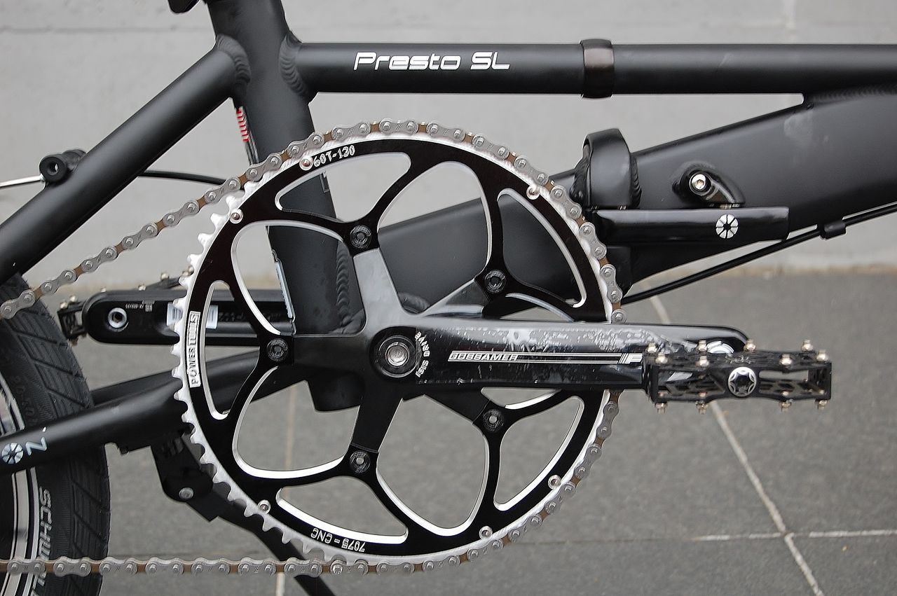 これでもチェーンとシートステーがギリ。BB を短いものに変えてチェーンラインを変えればどうかな。また検証してみます。60T でも大迫力だ!