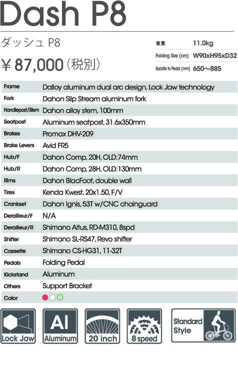 DAHON 三日目は、ロックジョウシステム採用フレームのダッシュシリーズから
