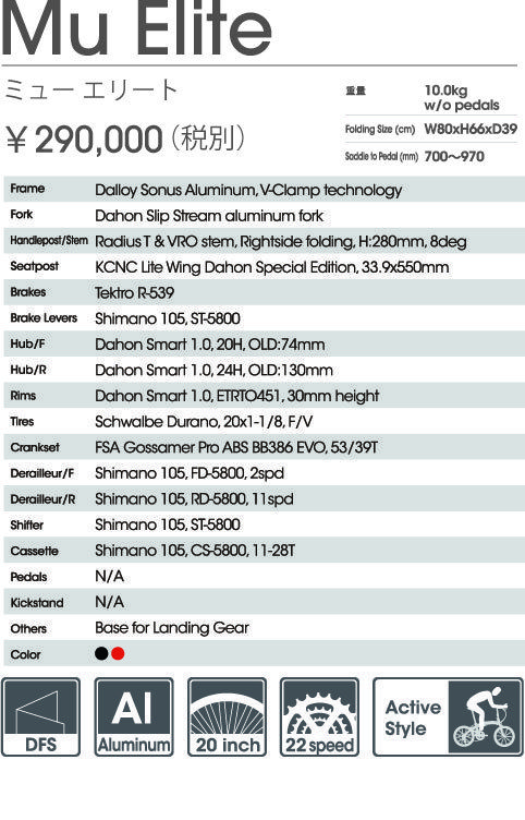 2017も DAHON のフラッグシップに君臨する Mu Elite。こちらもマイナーチェンジで、BB386 EVO ボトムブラケットとNEWデザインのFSA クランクセットを採用。