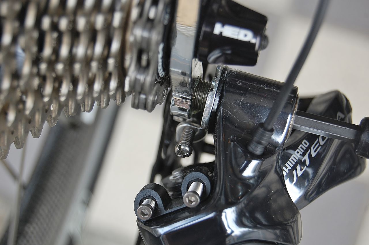 今トップギヤ(11速)でHi アジャストスクリューは解放状態。