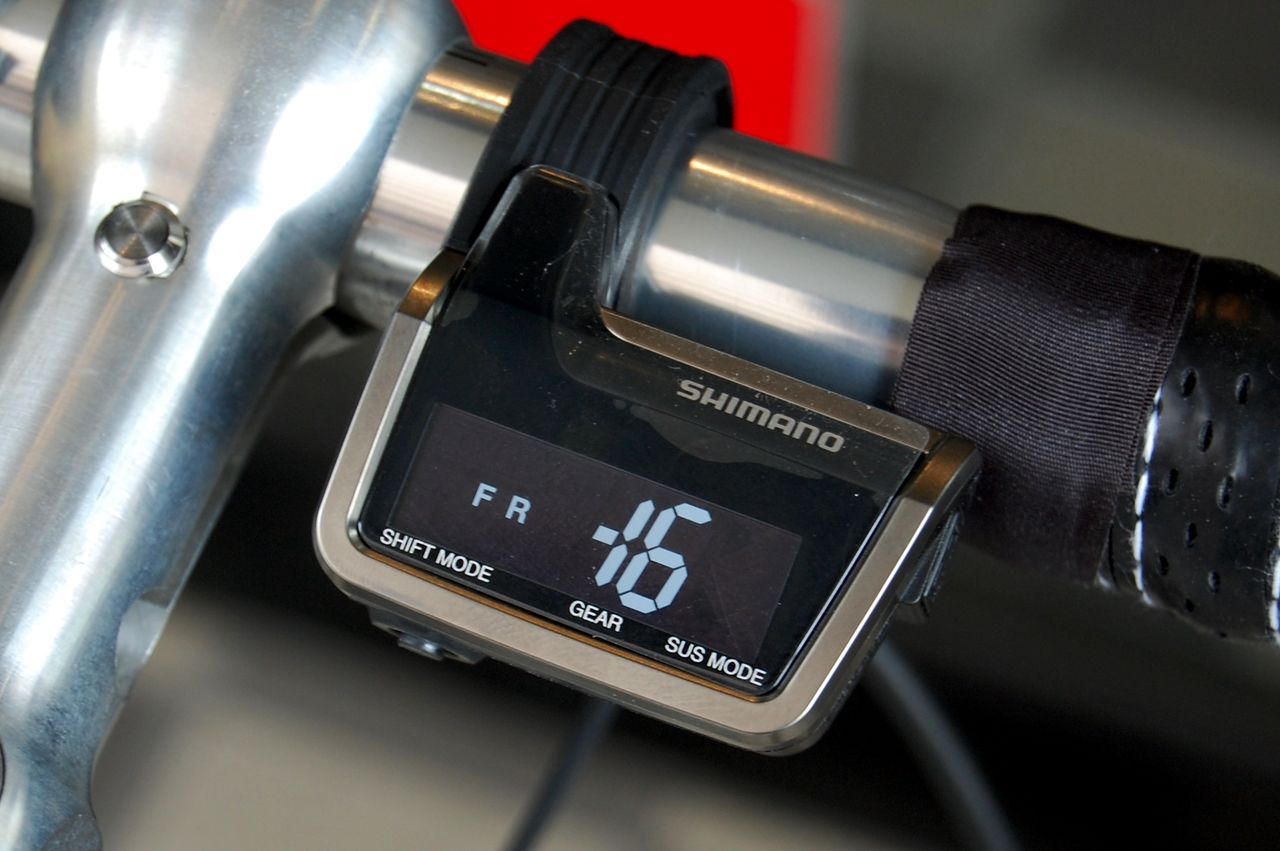 調整モードでは、中心からトップ側へ+16段階、ロー側へ-16段階アジャスト出来る。(9070 DURA-ACE Di2 では、それぞれ12段階) +16ってことは目一杯トップ側に動かしている状態。これでも足りてないってことだ。