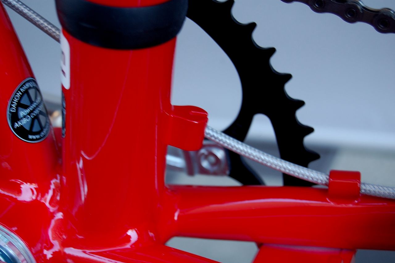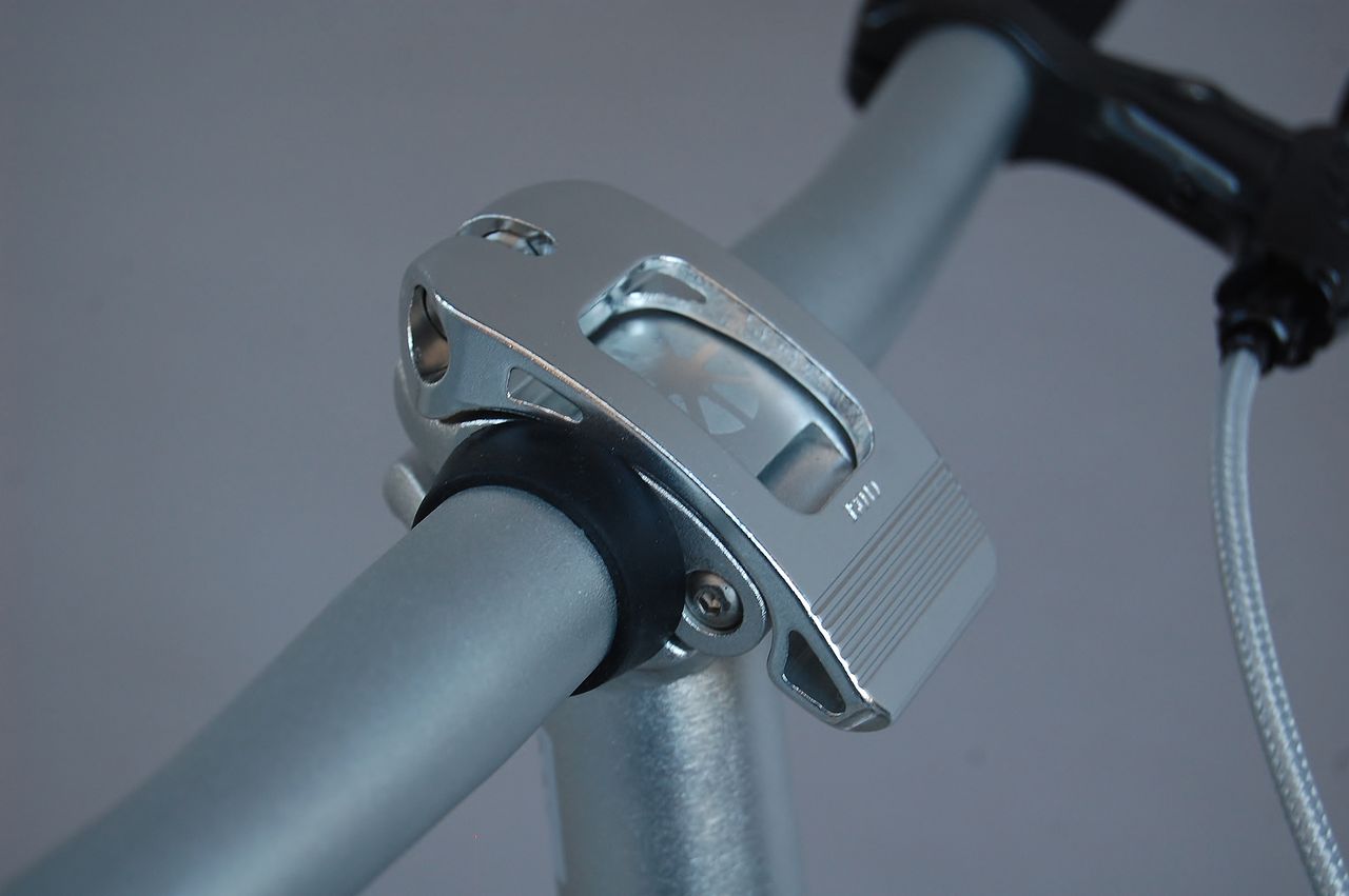 将来的なフロントダブル化に備え、フロントディレーラー台座とアウター受けを設けた嬉しい装備。