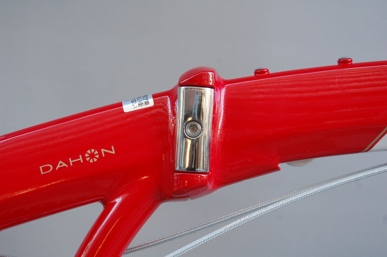 DAHON 20インチの最軽量を誇るMu SLX の2017年モデルが入荷です。2015で、11速化とバックフレームの形状変更を受けてからの大きなスペック変更はありませんが、カラーを含めハンドルバー、ポスト、グリップ、サドル、アウター受けの6点が変更されています。フルカラーリングチェンジに伴いストライプも新たなデザインが与えられました。プレゼントにリボンを掛けたようなナックルラインが素敵です。