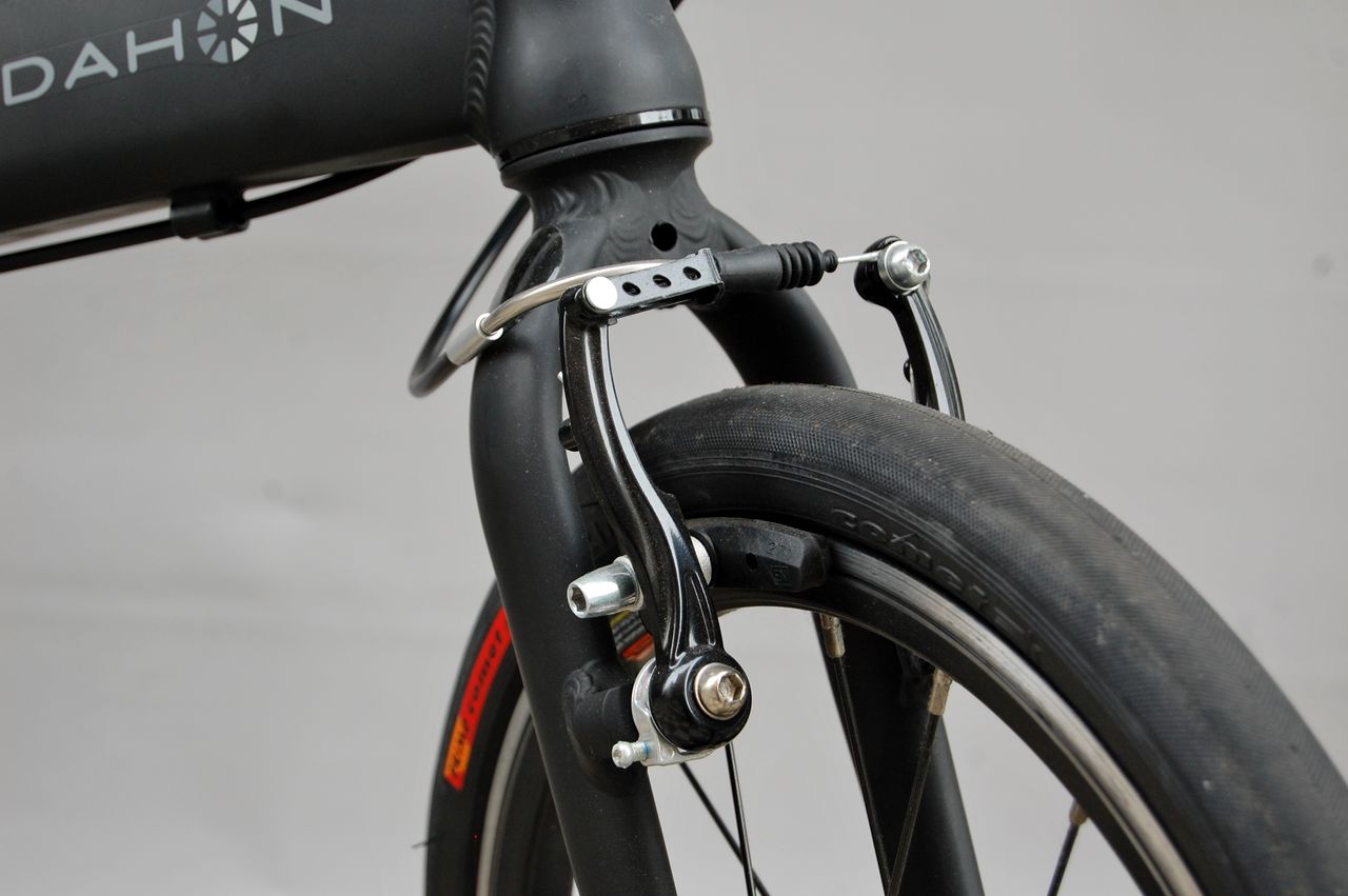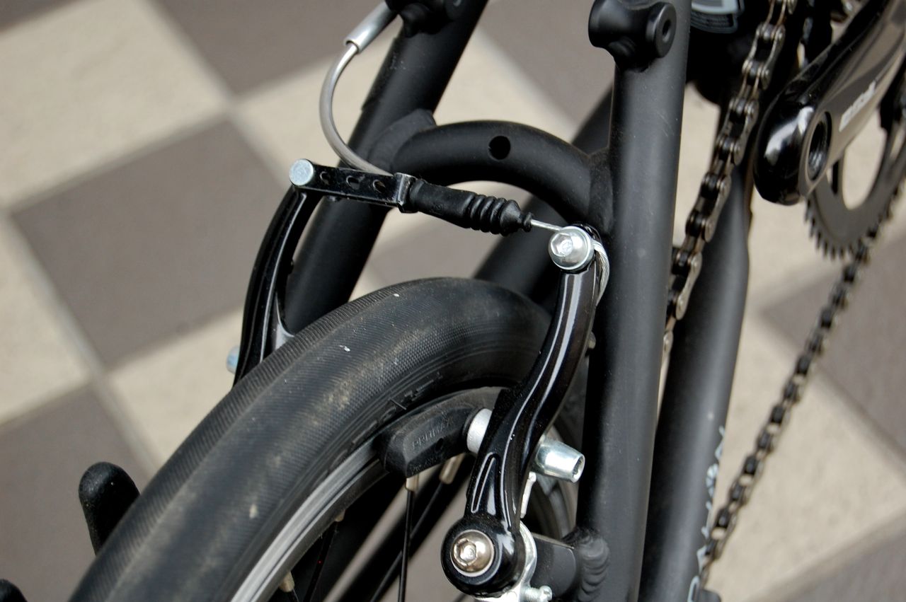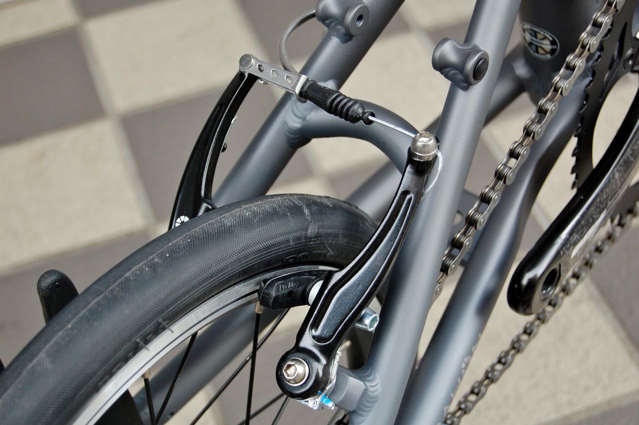Vブレーキアームが、80mm から 110mm のロングアームになりました。2.00のビックアップルでも余裕ですね。(マットブラックが2017で、チタンカラーが2018)
