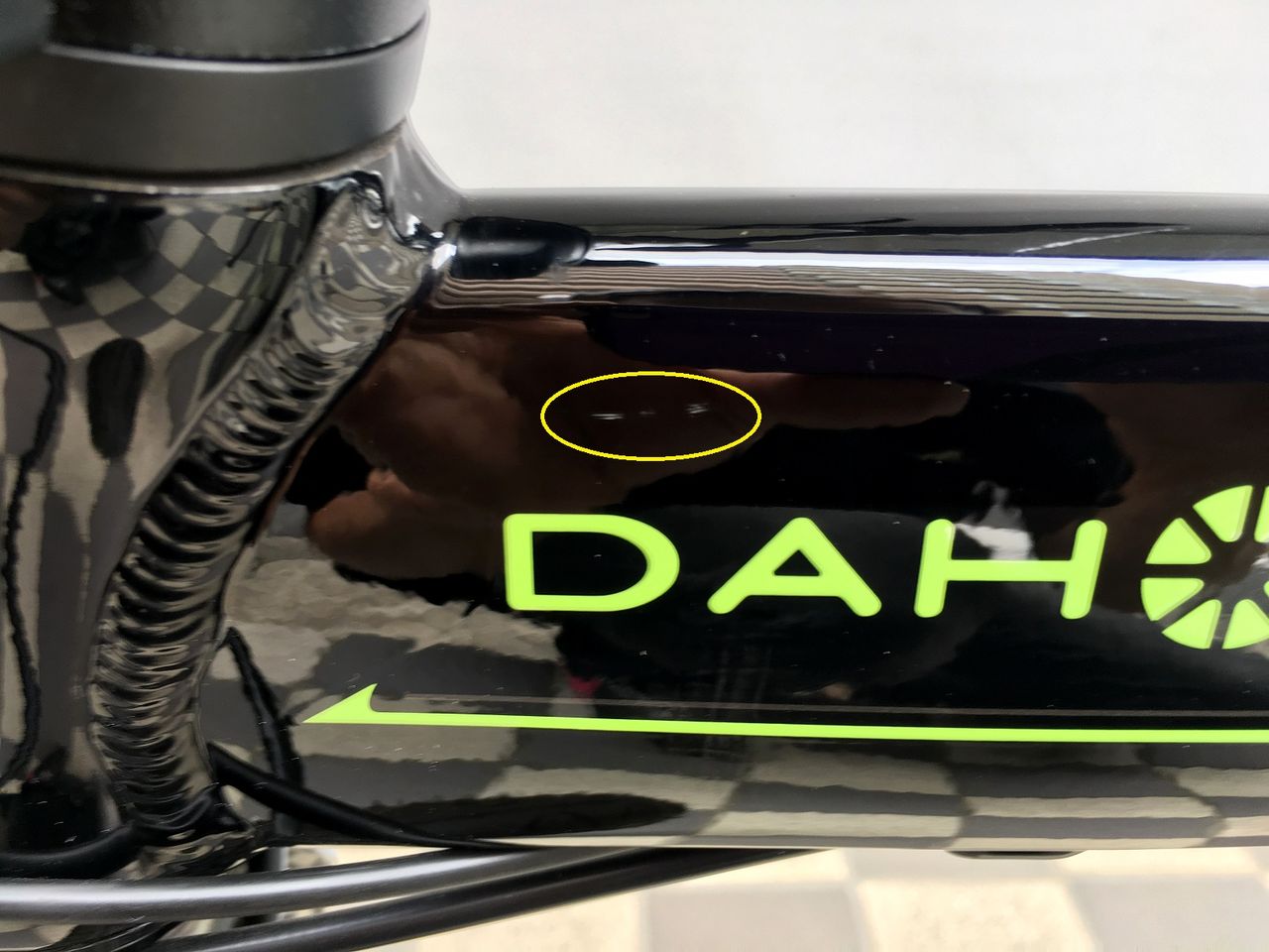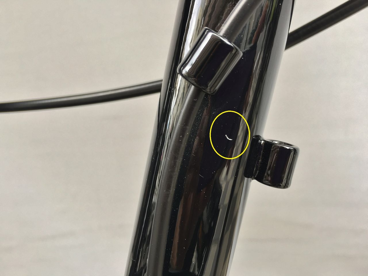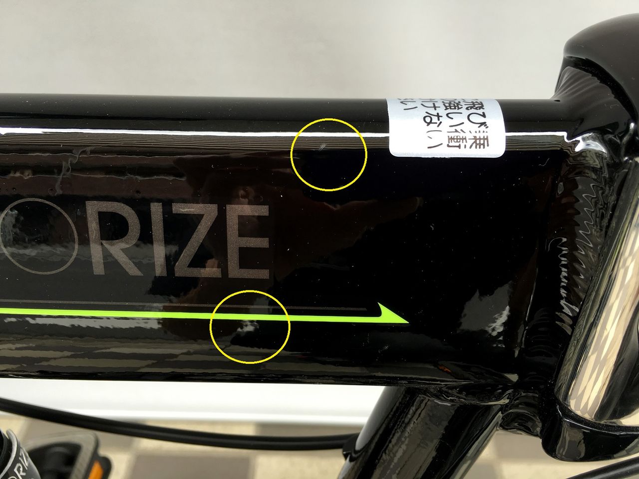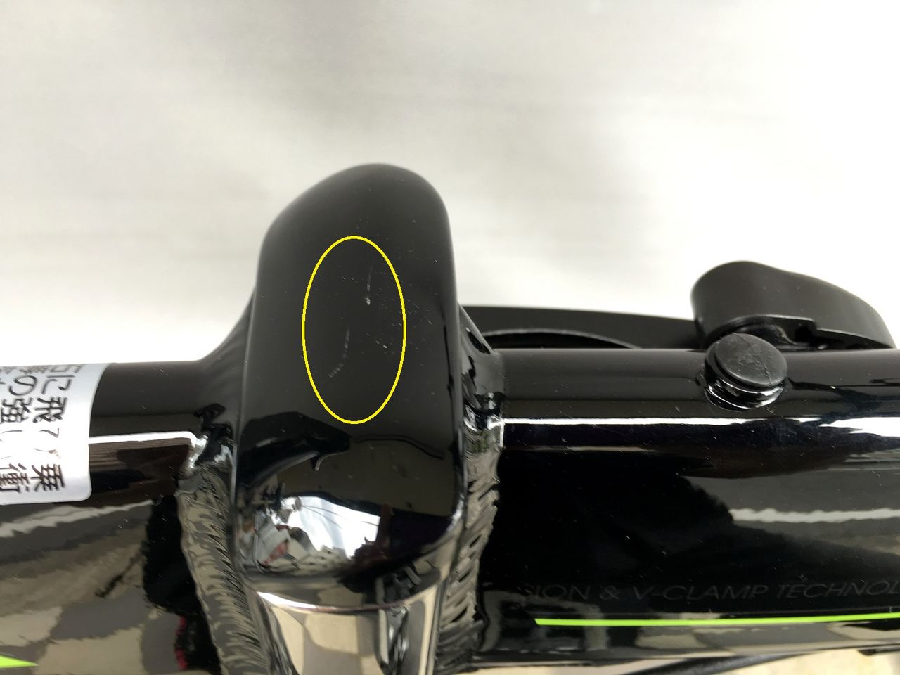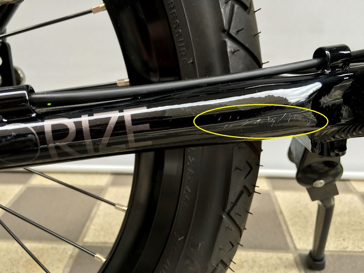 ヒンジ部からBBへ向かうチューブ左側に傷あり。