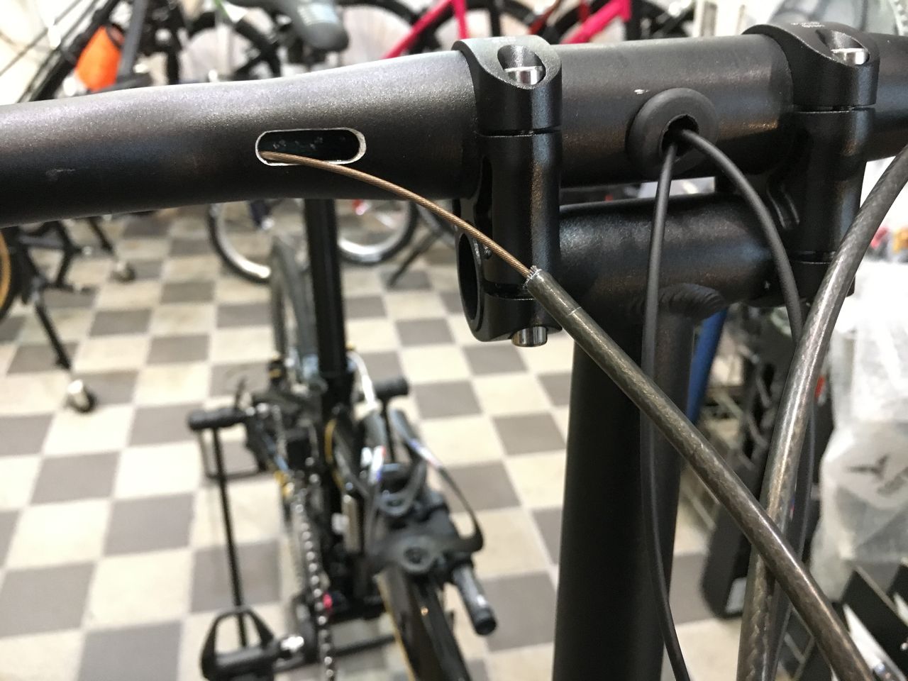 インナーケーブルに導かれながら迷いなくブレーキレバーまで。
