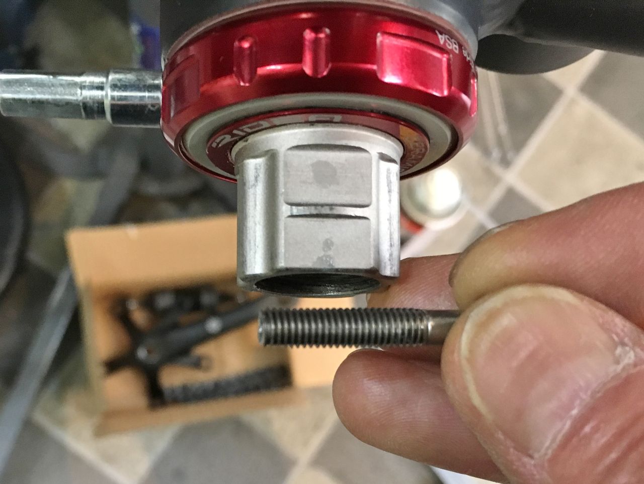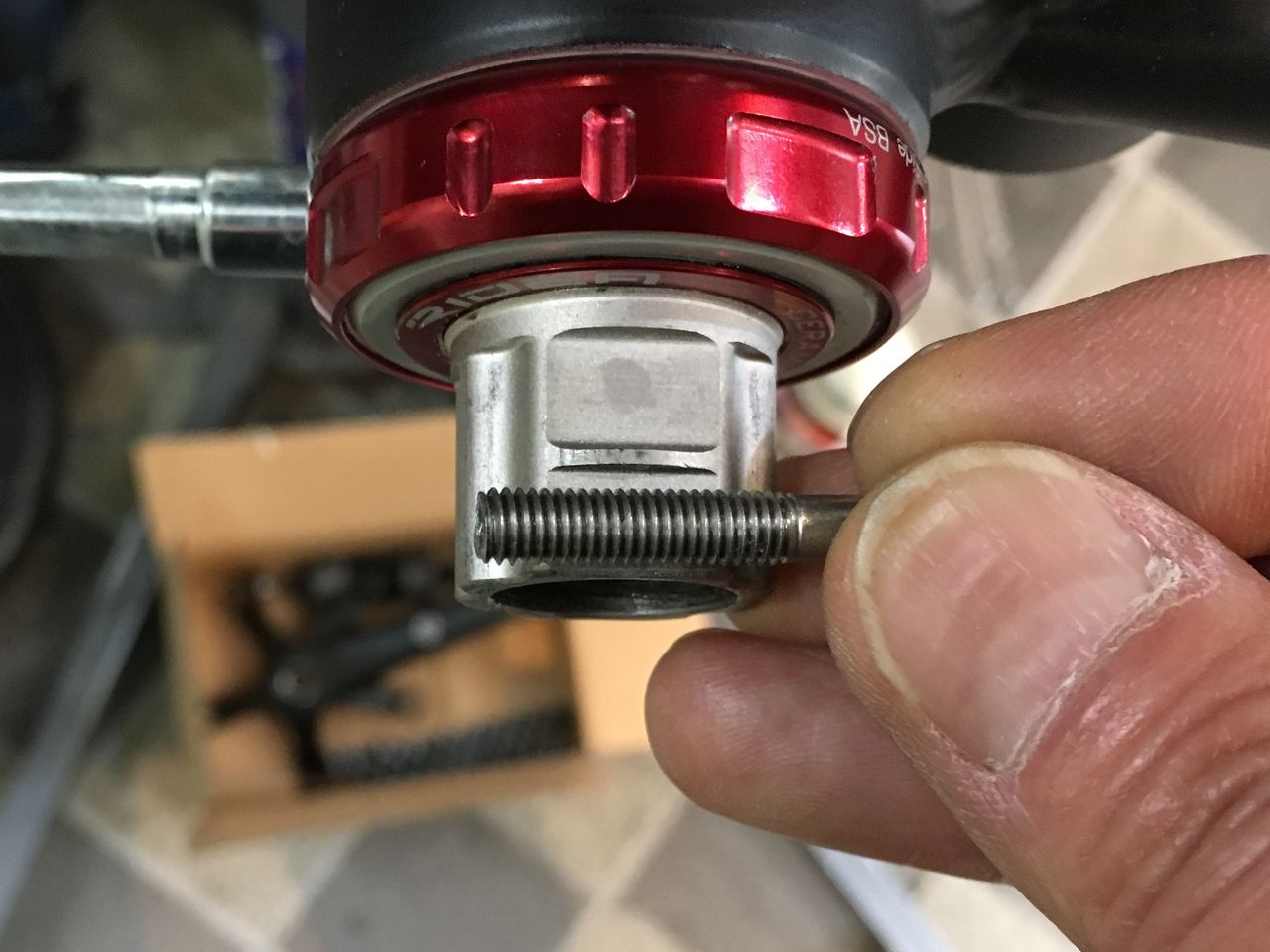 プリロード調整機構もなければセルフリテーニング機構もないやりっぱなしクランクであります。一度フィキシングボルトを締めてしまうと勘合して抜けなくなります。