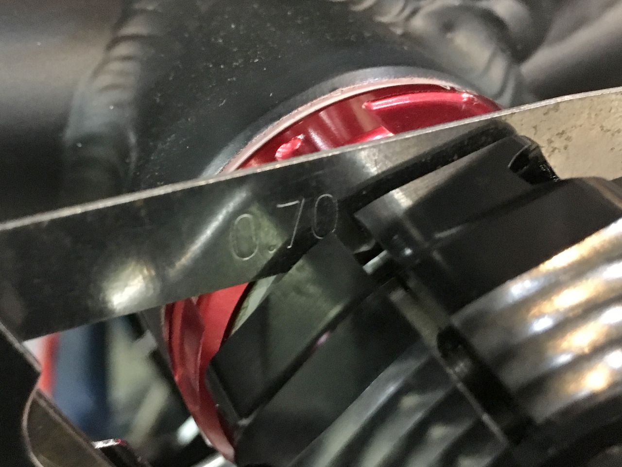 隙間ゲージで測ってみると0.70mm でした。