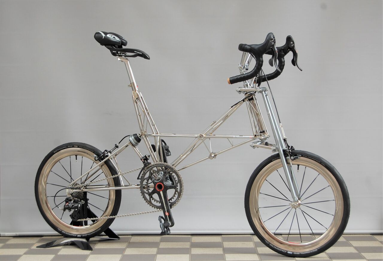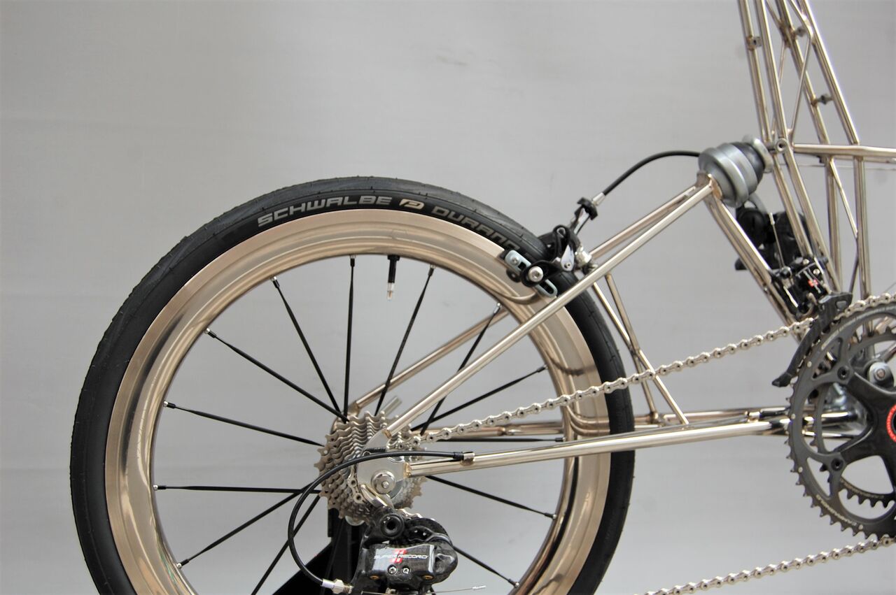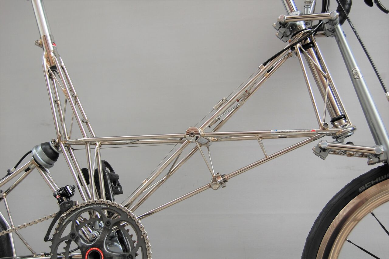 ロールス先生ダブルパイロンのホーバーホール完了です。トマトケチャップでビカビカにしたステンレスフレームとニッケル仕上げの ANDOZA ホイールの相性が抜群です。今夜はノーコメントで!