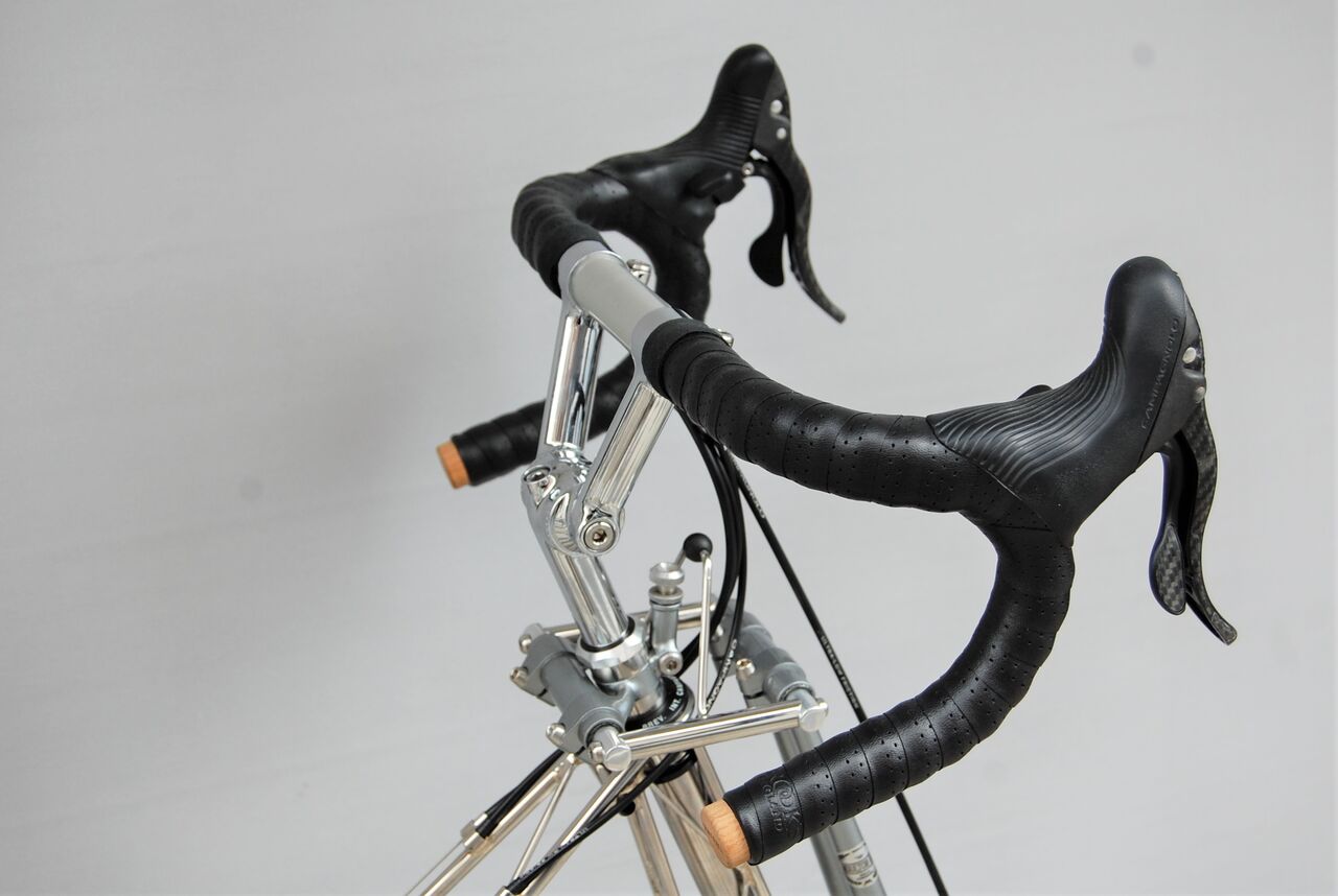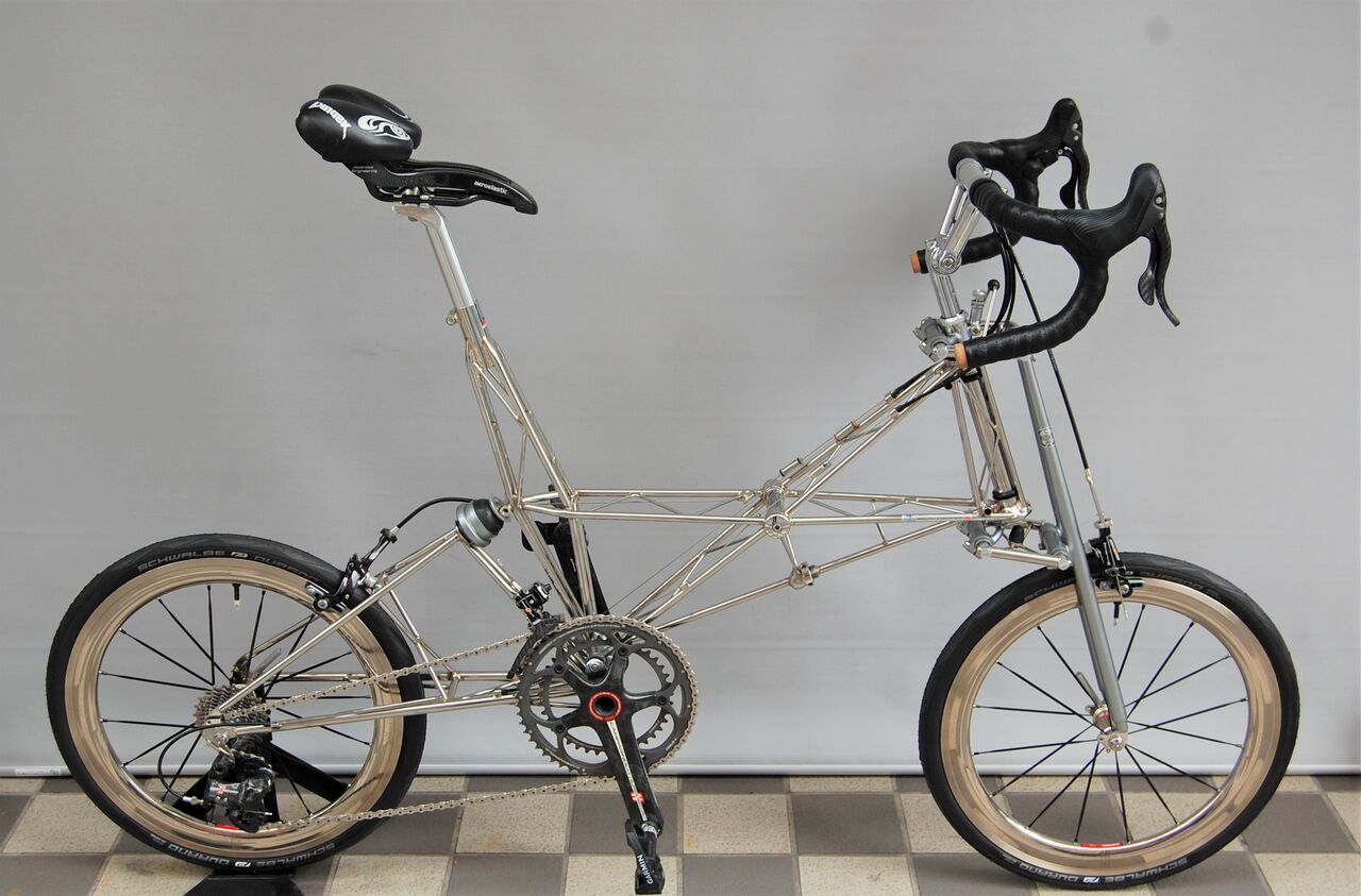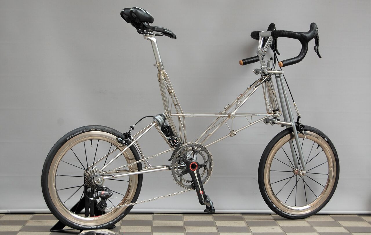 ロールス先生ダブルパイロンのホーバーホール完了です。トマトケチャップでビカビカにしたステンレスフレームとニッケル仕上げの ANDOZA ホイールの相性が抜群です。今夜はノーコメントで!