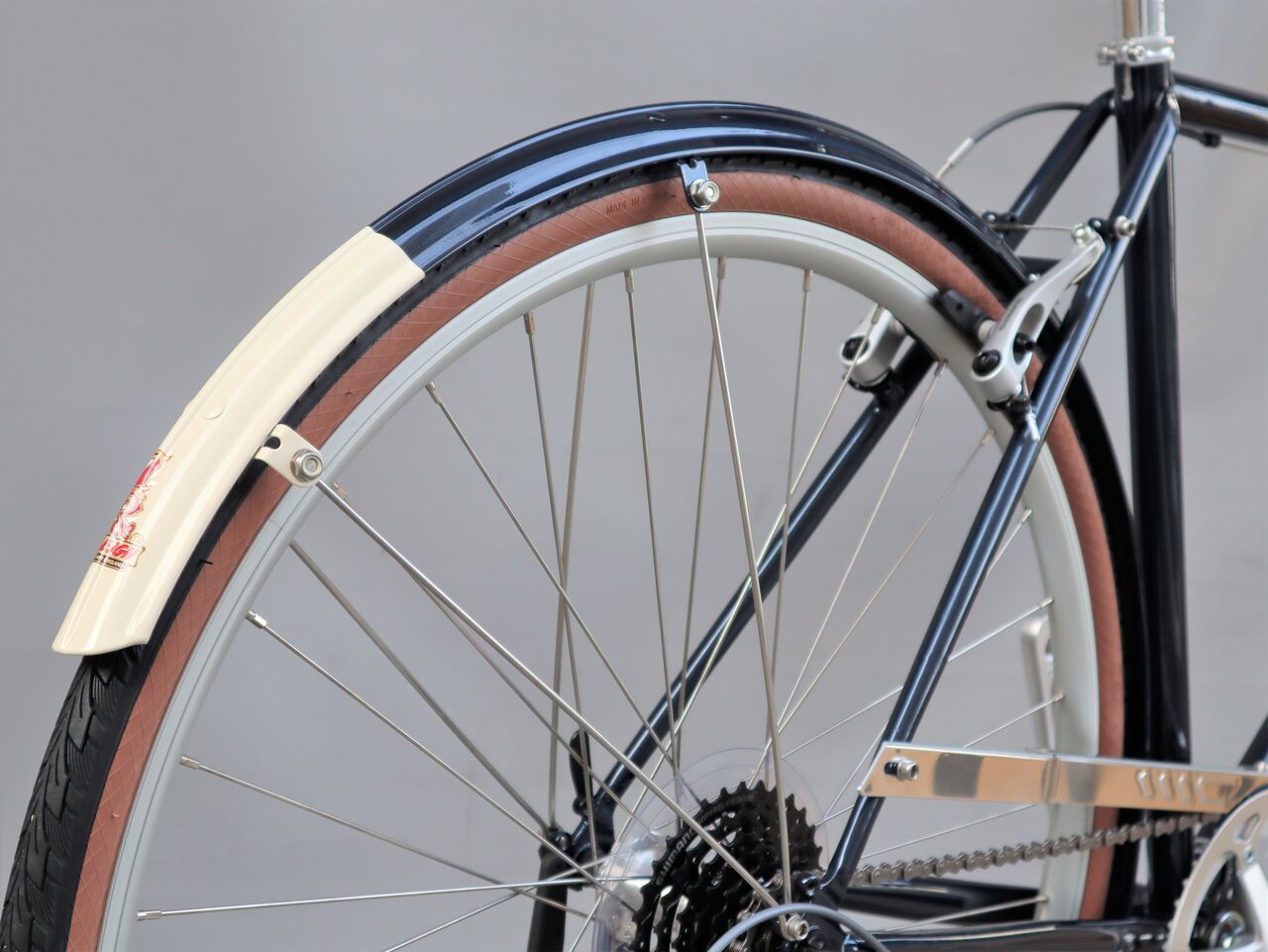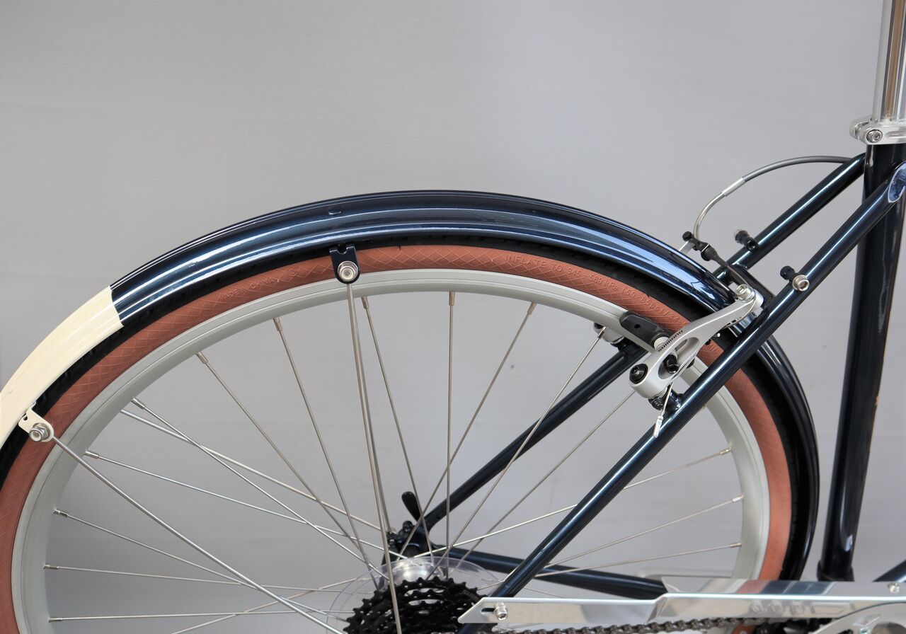 ラレーのトラディショナルなクロスバイク CLB を入れてみました。カラーは、アガトブルー、アガトグリーンの2色展開。フレーム同色のマットガードが大人の雰囲気を醸し出します。