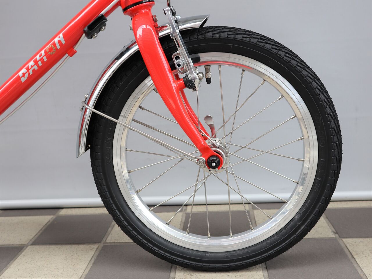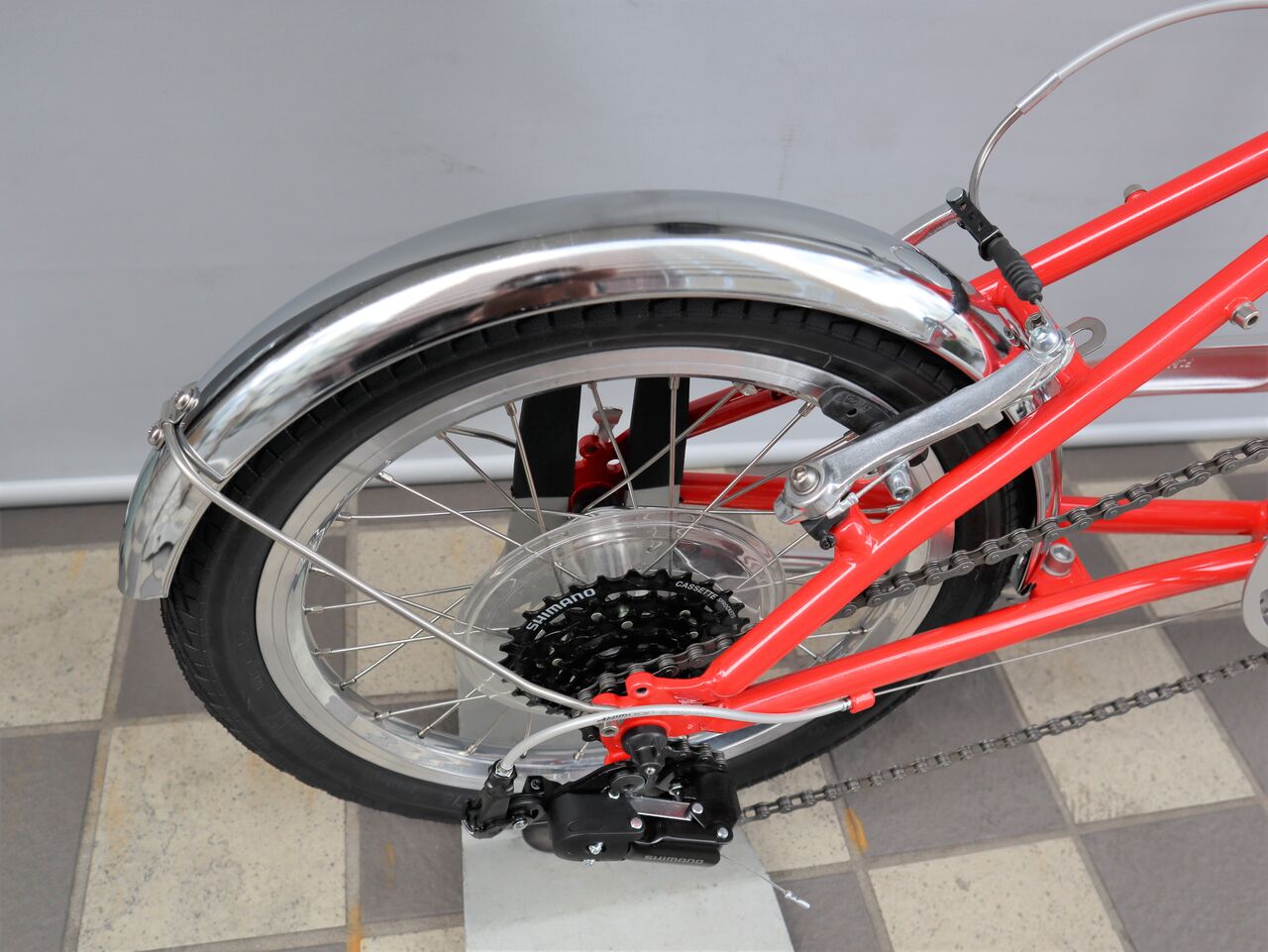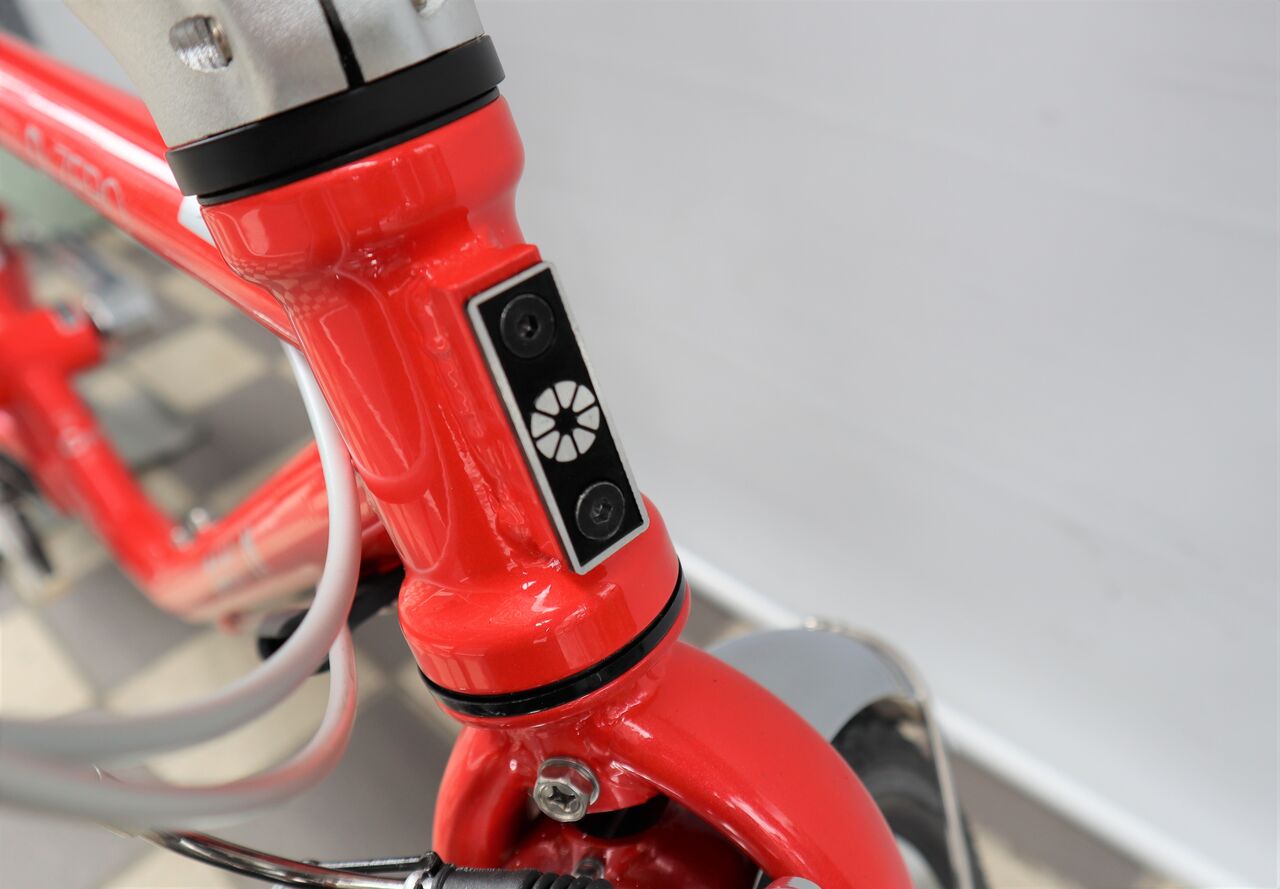 1982年ファーストダホンの復刻版 D-ZERO です。ハンドルポストのみ畳めるセミフォールディングバイクとなっています。カラーは、クロームとレッドの2色展開。以前ご紹介したプロトタイプとは二つ変更点がありハンドルポストがアジャスタブルタイプとなりマッドガードが標準装備となっています。