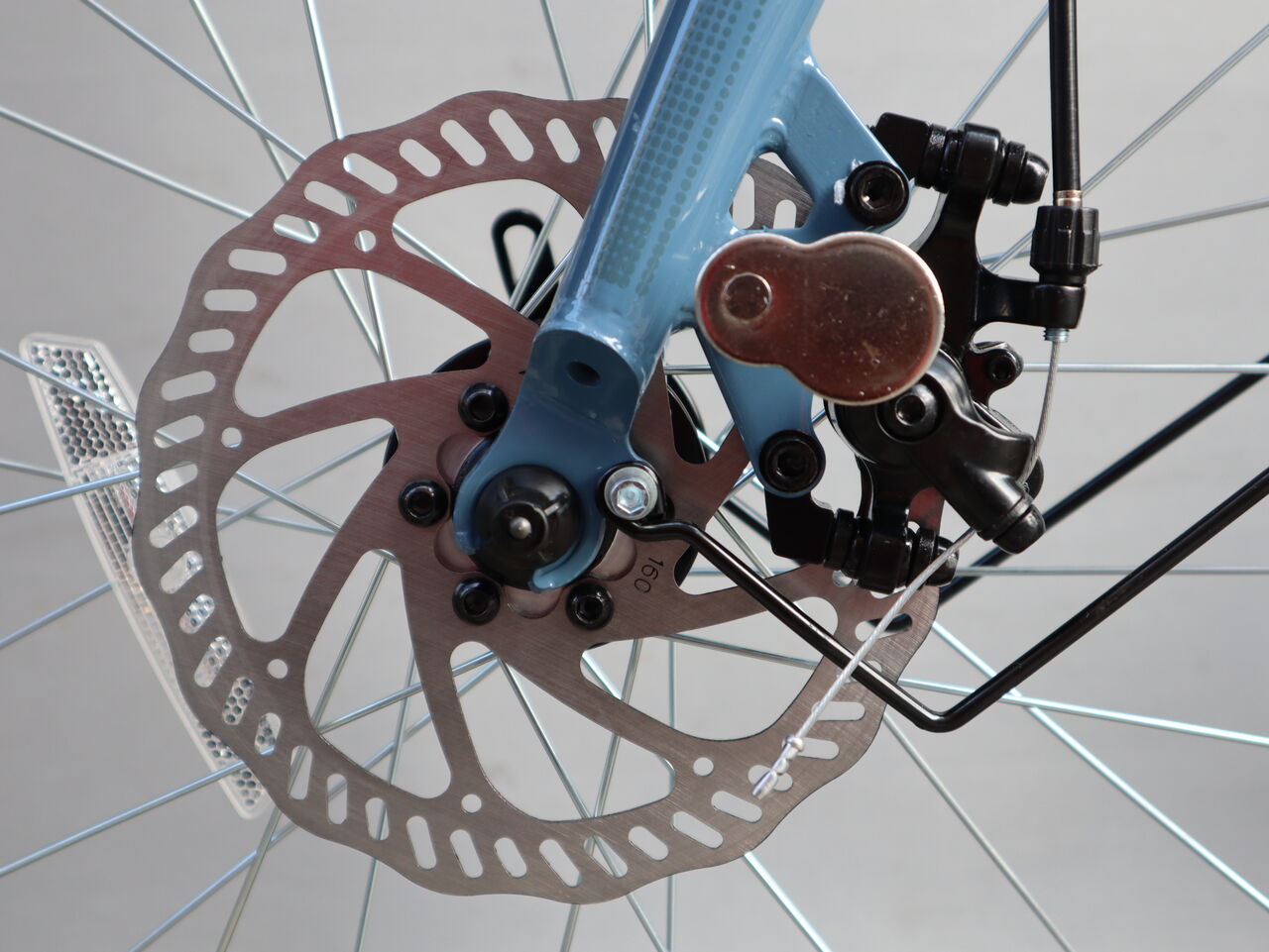 ワイヤーで操作するメカニカルタイプのディスクブレーキです。