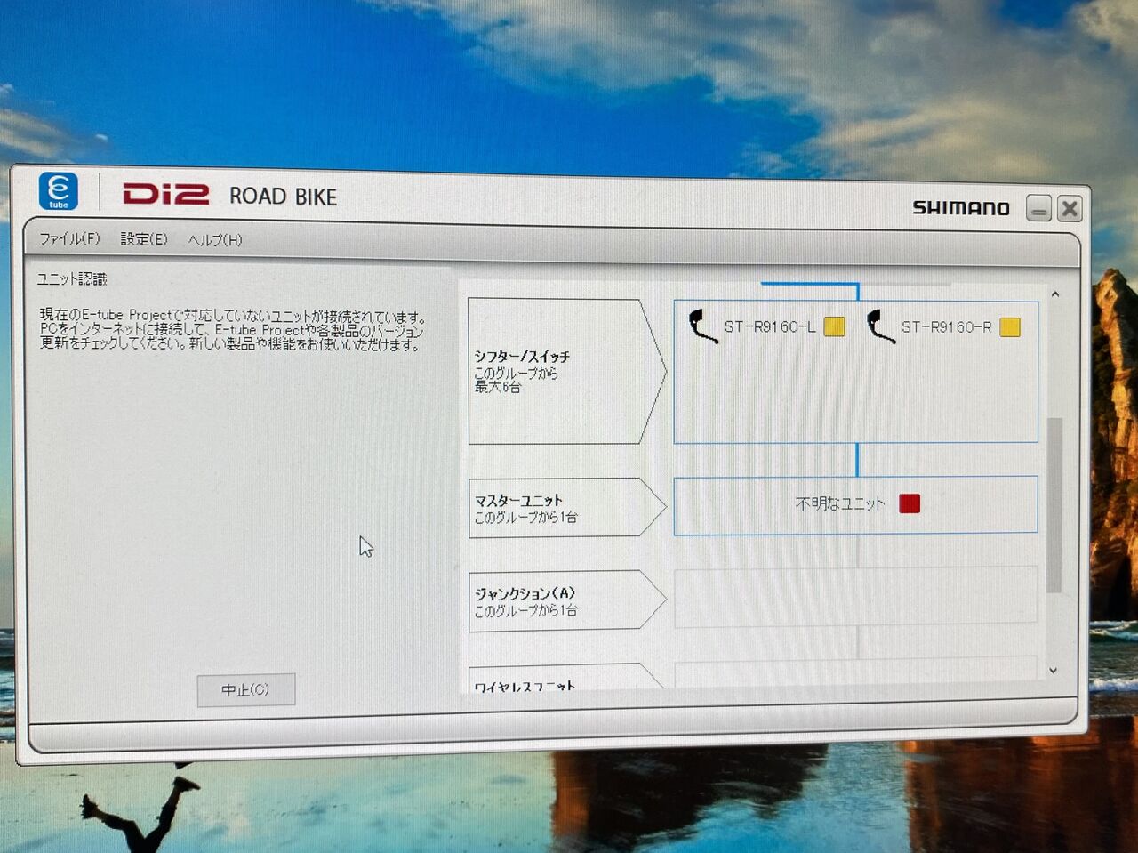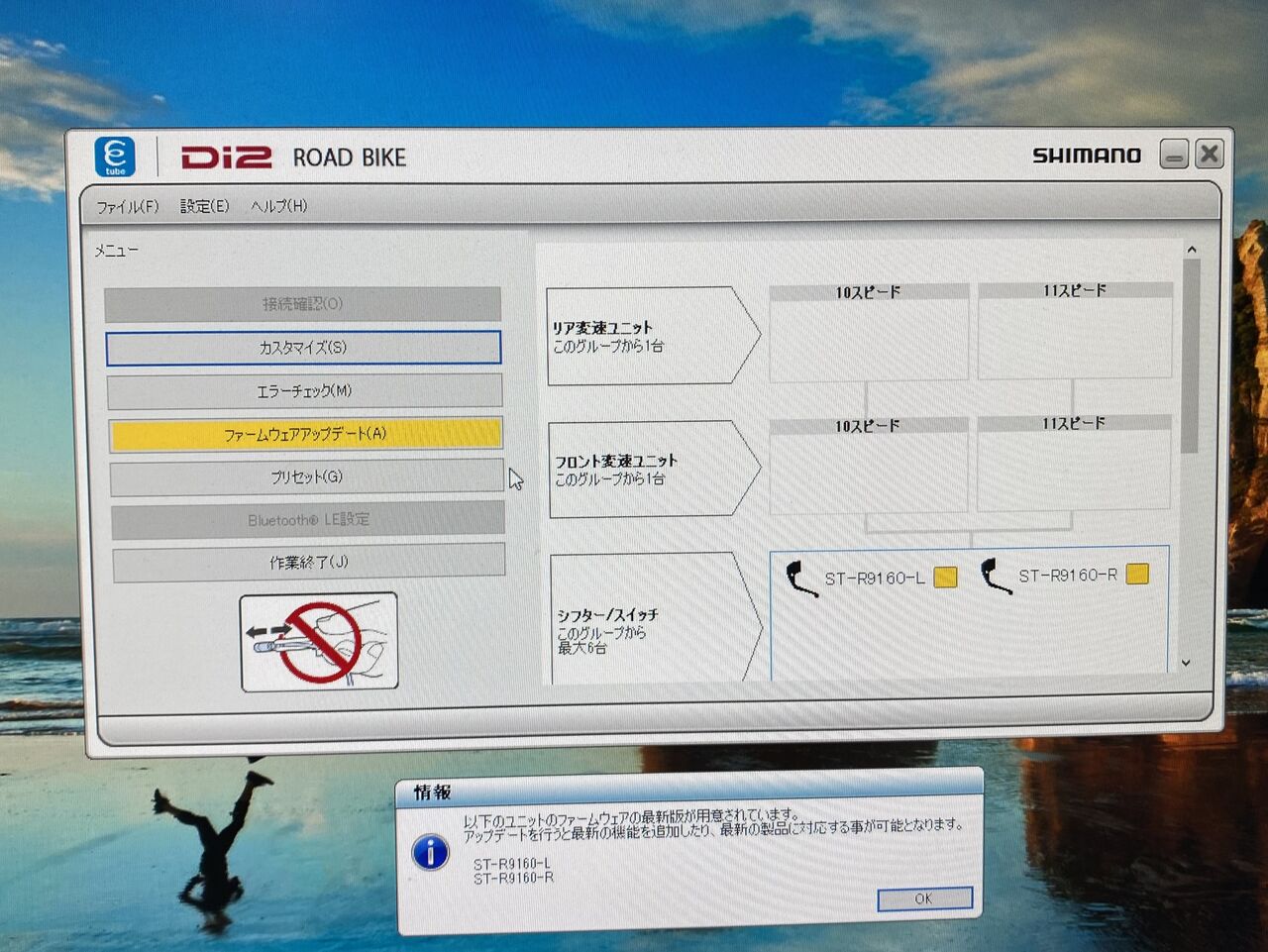 12速リヤディレーラーとバッテリーは、「対応していない機器が接続されています」と出てしまった。Ver.3.4.5 では、全く12速機器には対応していないようだ。