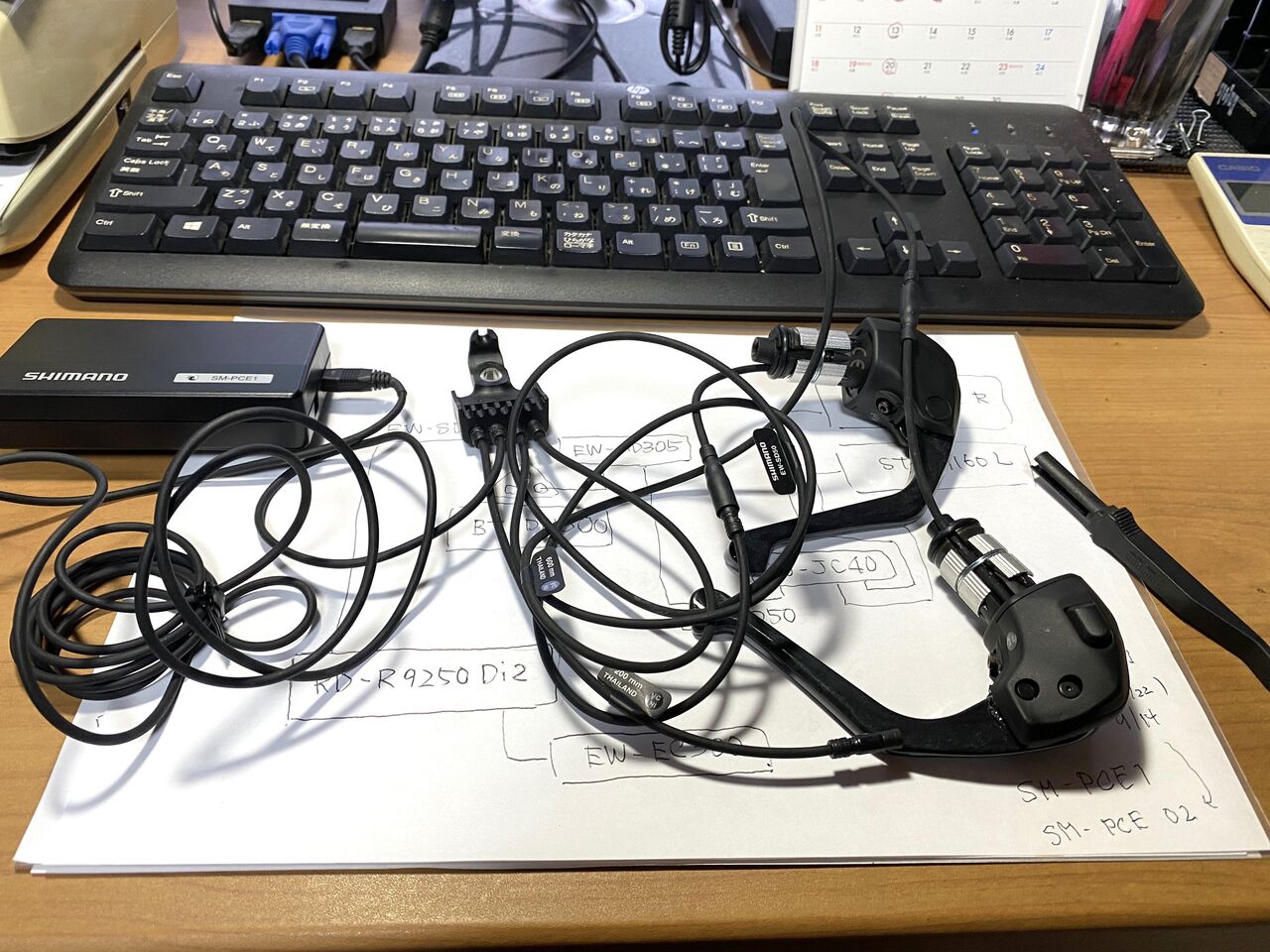 今のところ進んだんのは、バッテリーが充電で来たってことだけ。さて Shimano E-TUBE PROJECT に接続してアップデートできるか試してみよう。シマノに相談する際、しどろもどろにならぬよう配線図を書いておいた。