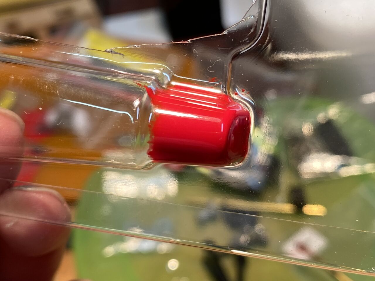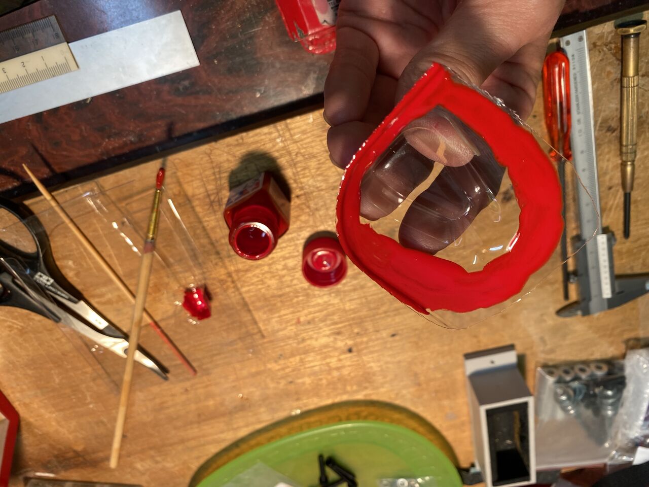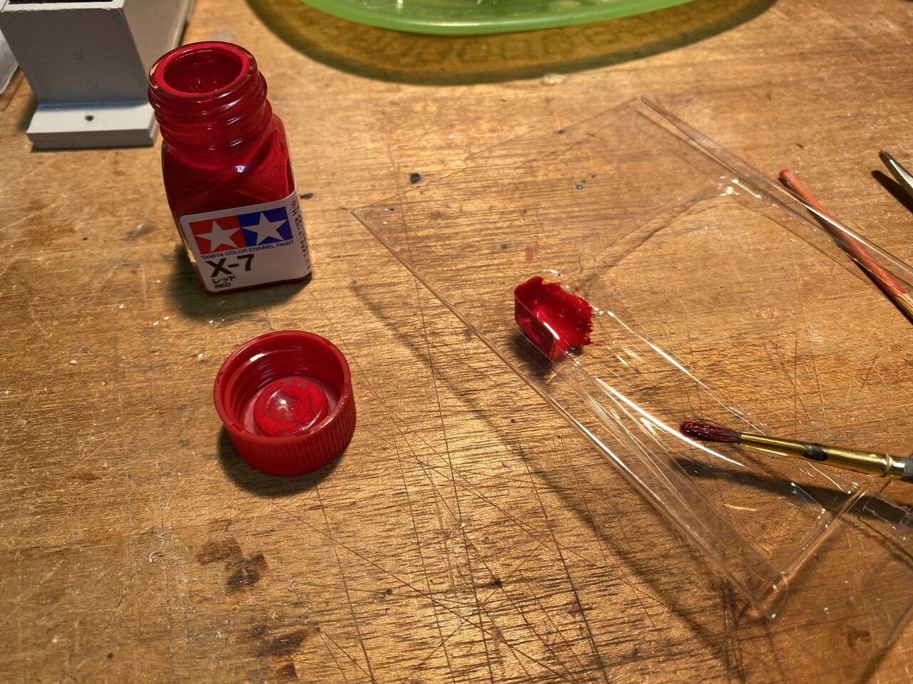 テストピースにペイントしてみます。裏側から刷毛塗りすれば、