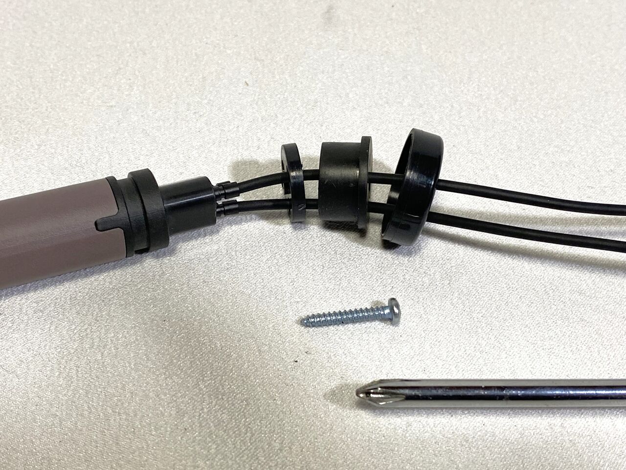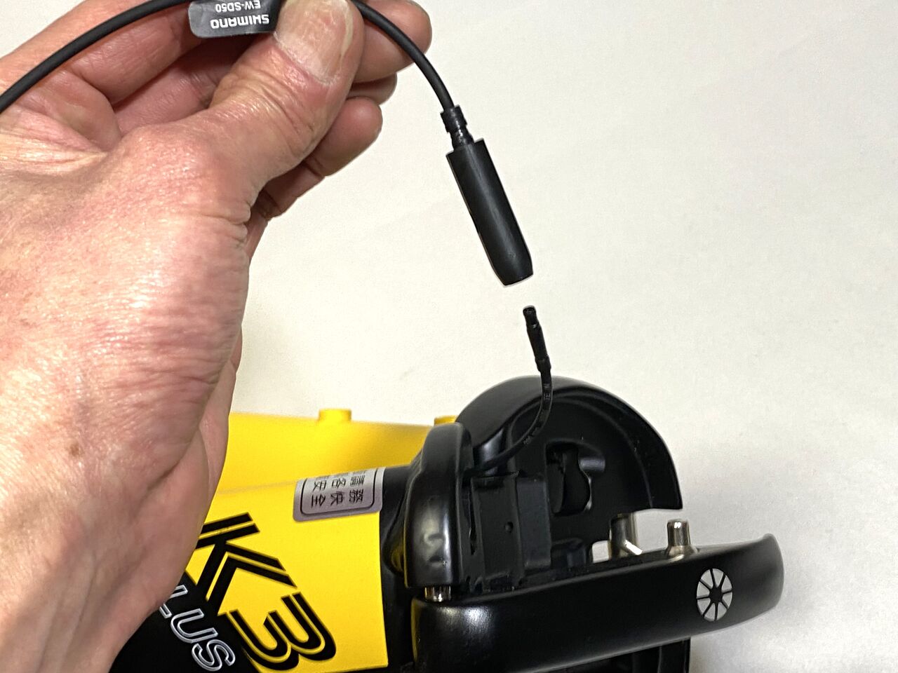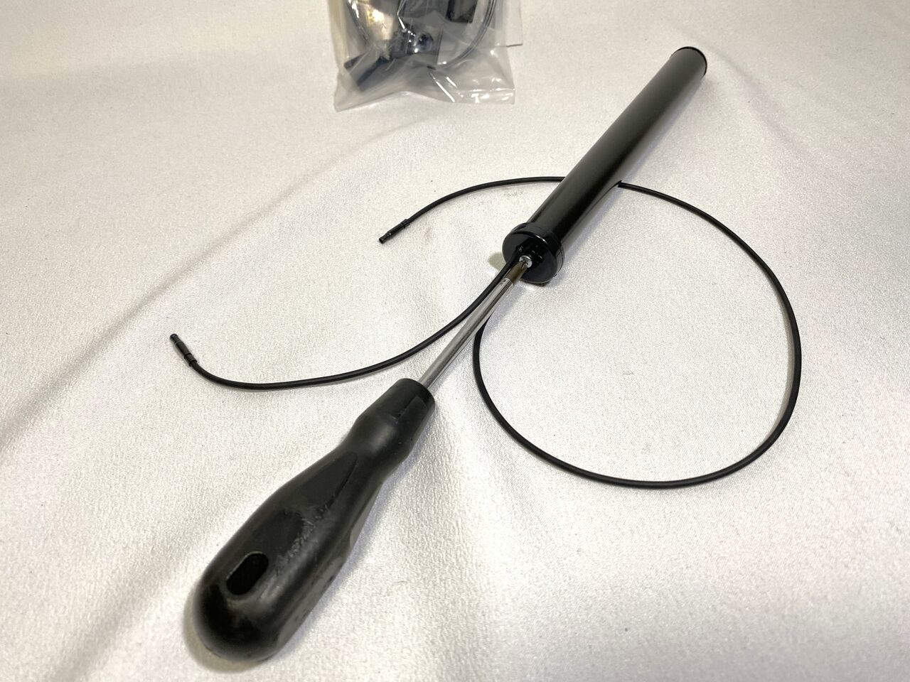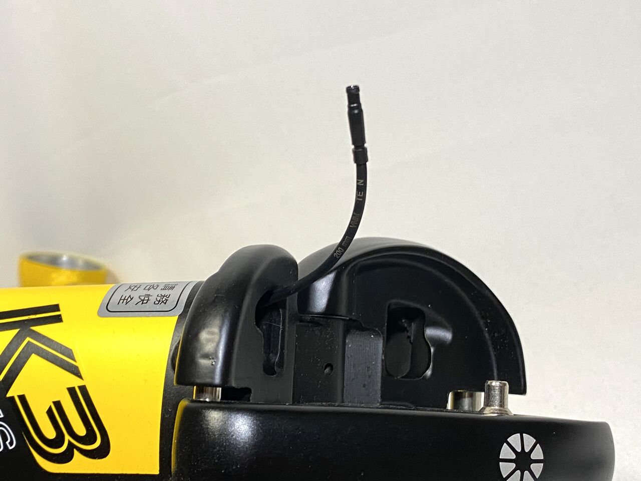 シフトケーブルインナールーティングの穴にエレクトリックワイヤーを通してバッテリーを近づければ、