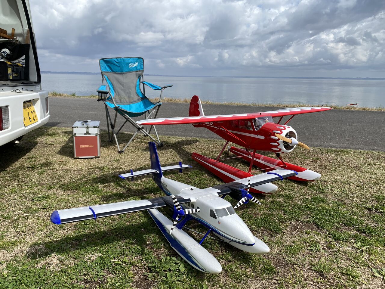 飛ばしたのは、今回で3回目となる手前の電動ツインオッターと初エンジン水上機のマッスルクーペです。