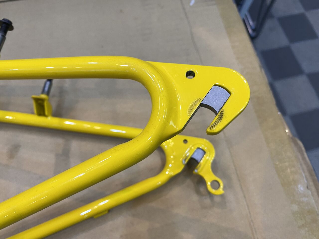 フランジ内側のブラスブッシュが擦れる部分は、梨地が見えてますので、ちゃんとマスキングして塗装してるみたい。これは初めて見ました。