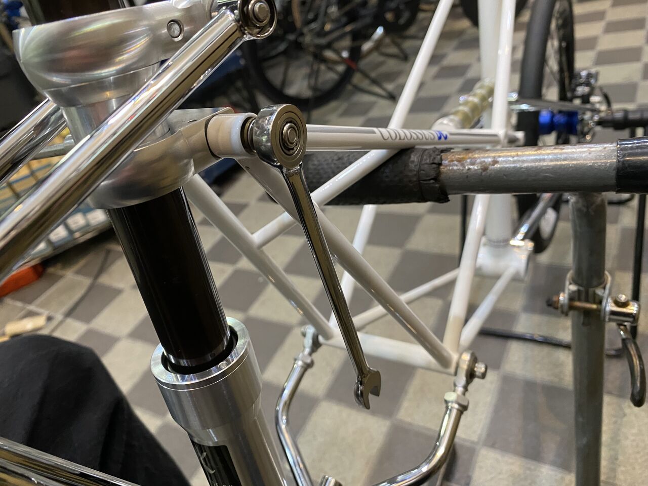 フレームが開くのを制御してるだけなので、ここはナイロンナットが止まったところでストップし、締め込まない。