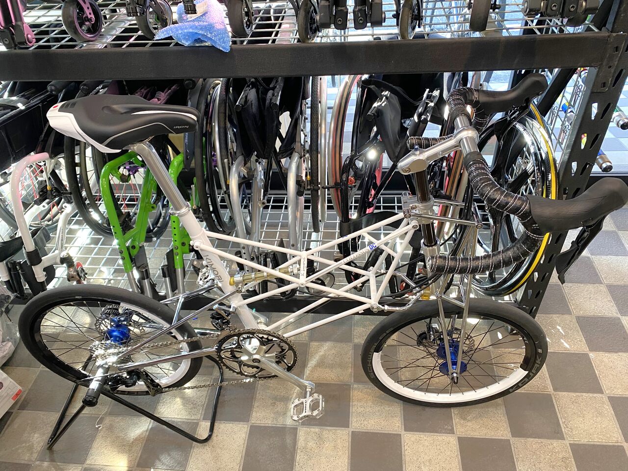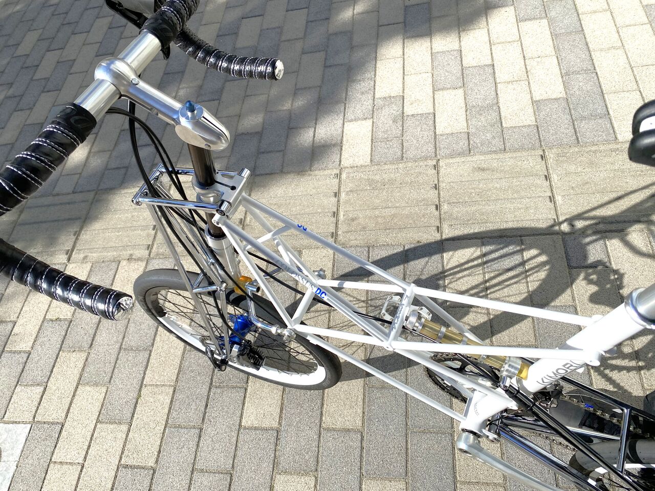 撮影後に少し試乗しました。ディスクは、リムブレーキ特有のザラザラ感がなく GOKISO ハブの殆ど無音のフリーと相まって非常にサイレントな乗り味です。路面の大きな段差は、COLOSSUS が吸収し写真のようなタイル張りのような細かい段差は、GOKISO ハブが全て吸収してくれます。これは疲労度に大きく関わってくるでしょう。何処までも行けそうな気がして楽しくてしかたありません。