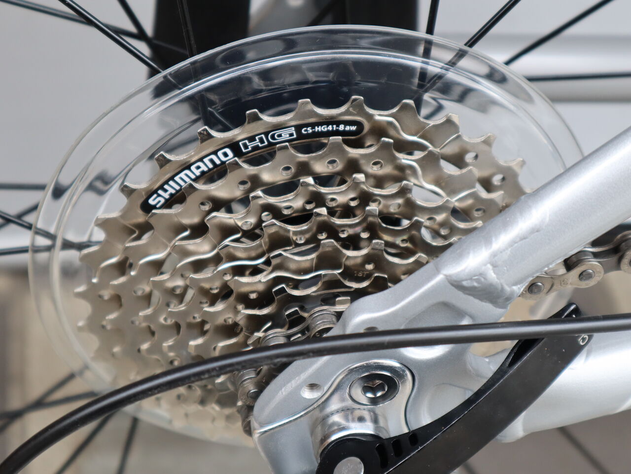 フロントディレーラー台座付で、フロントダブルにも対応。