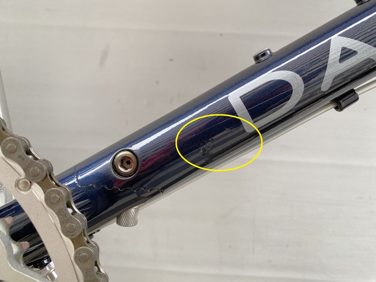 ダウンチューブ右下に折畳み時に出来た目立つキズあり。