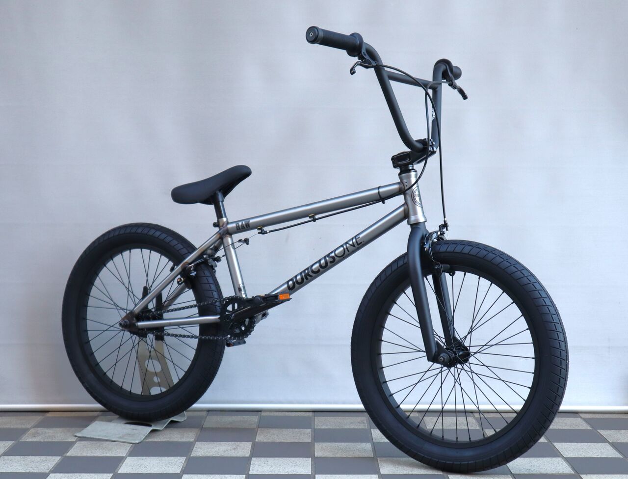 DURCUSONE(ダーカスワン)の取扱を開始しました。そして今日ご紹介するのは、クロモリフレームの本格 BMX の RAW です。(フレームのみの販売35.200円税込もあります)ロウとは、素材の意味で溶接痕が残るクロームモリブデン鋼をそのまま見せるクリアー仕上げです。カラーは、こちらのマットロウの他マットブラック、マットデザートタンの3色展開です。