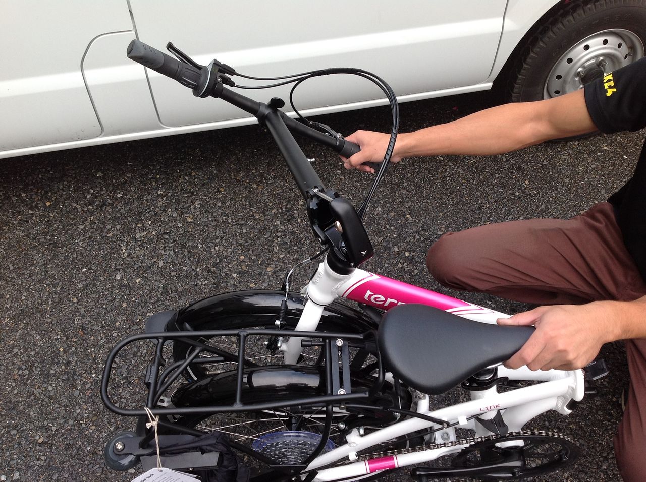 スポーティーなサドルに変更。DAHON ロゴも可愛い